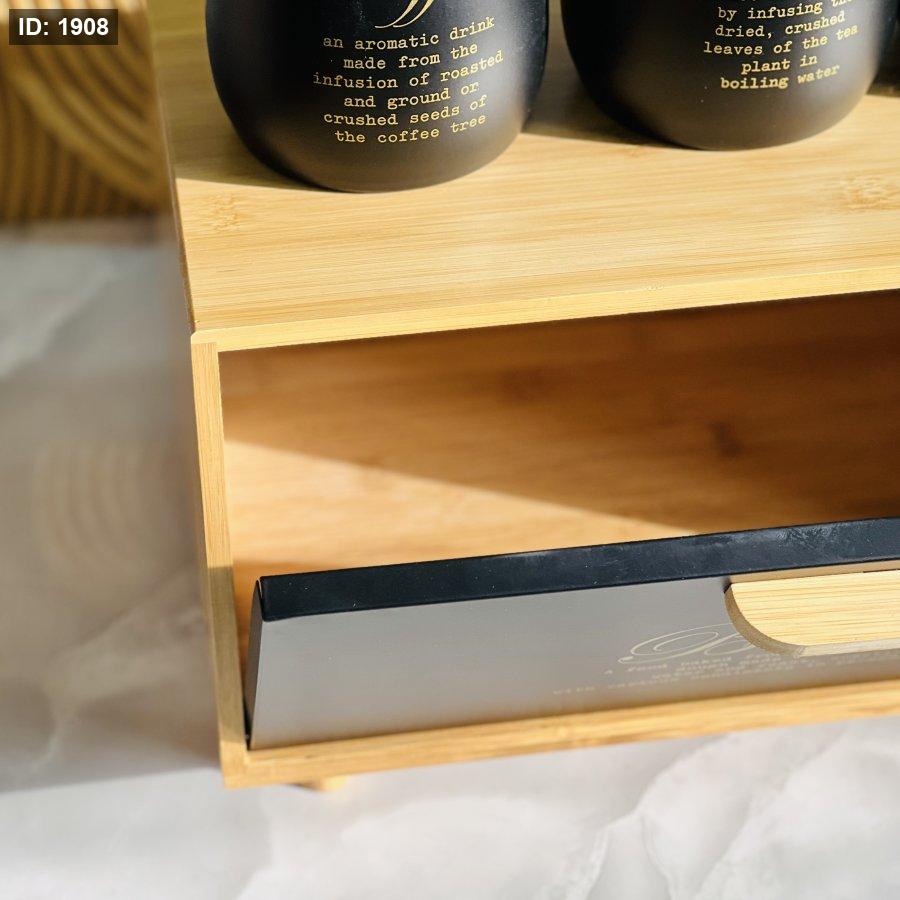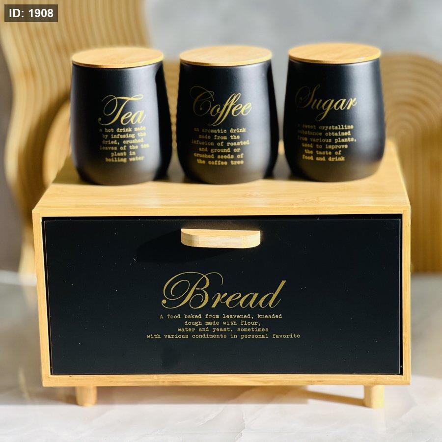 طقم صندوق خبز بامبو +3سكريات معدن اسود