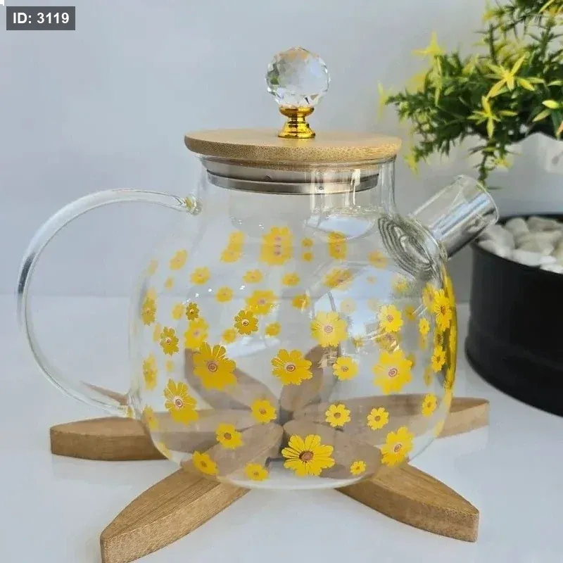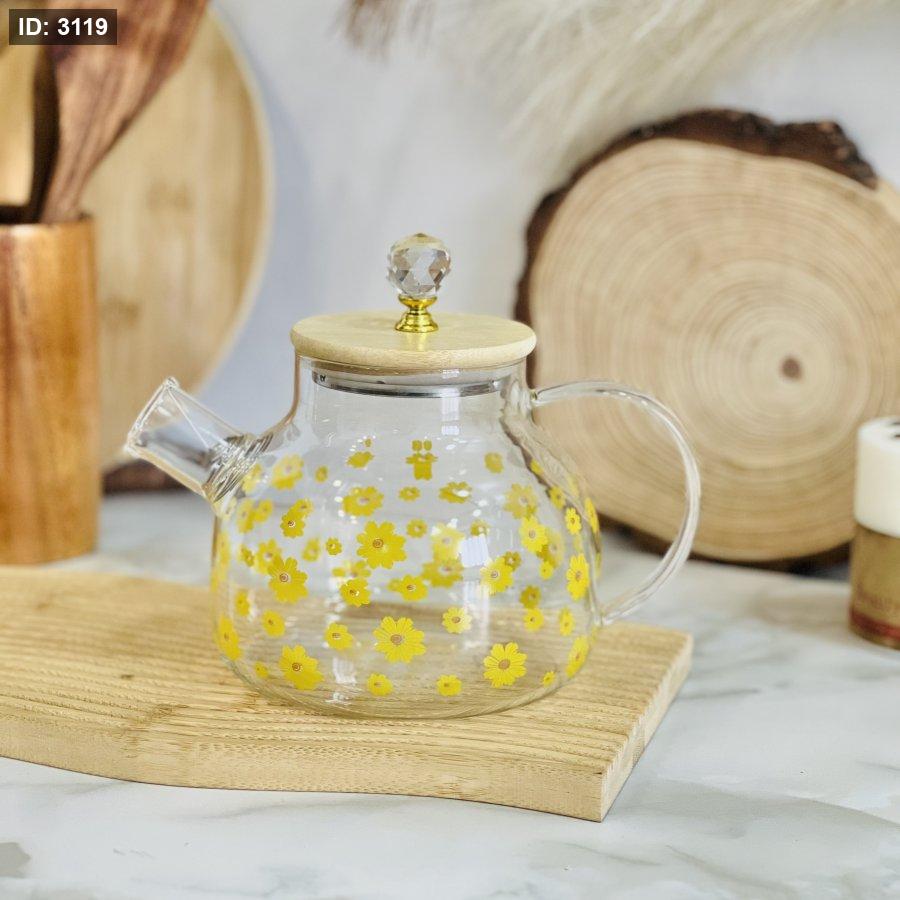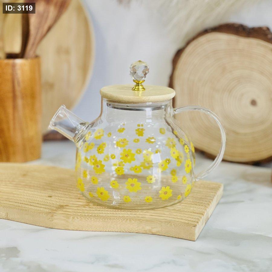 براد شاي شفاف غطاء بامبو