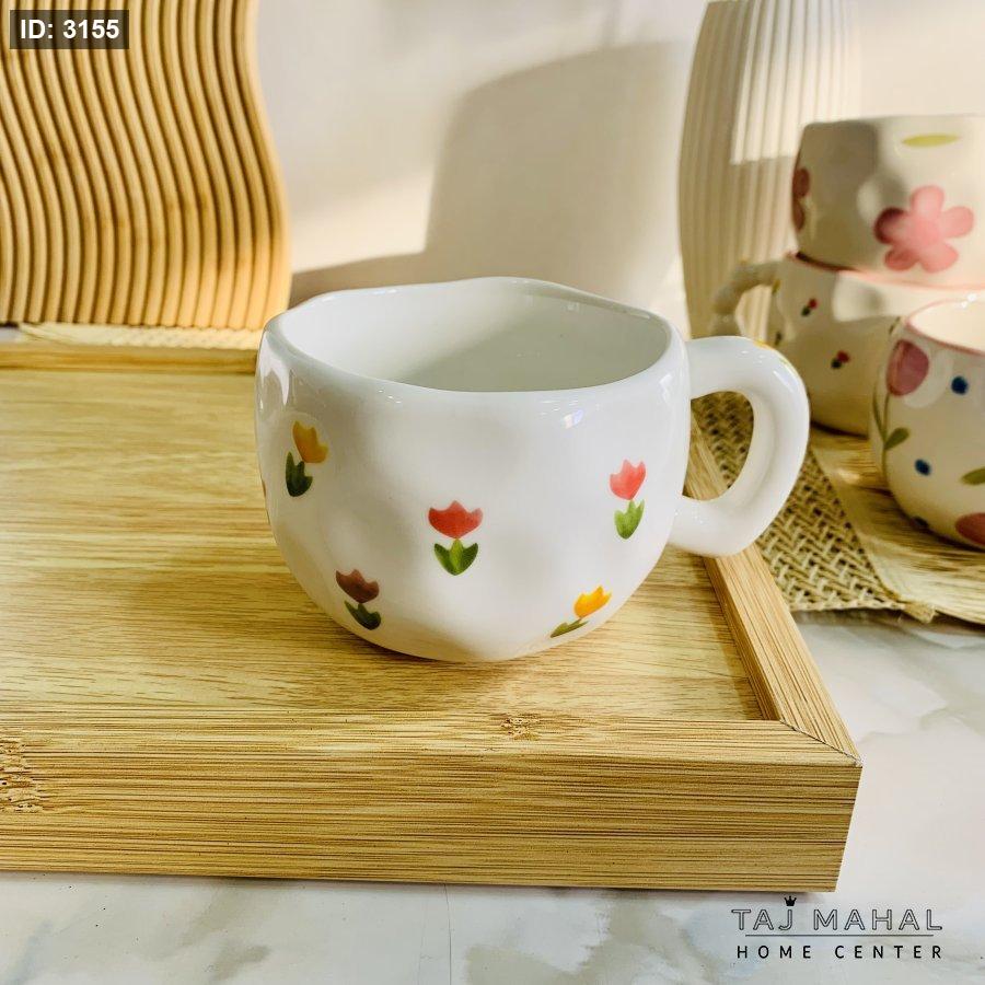 مج يدوي بنقشة زهرة التوليب