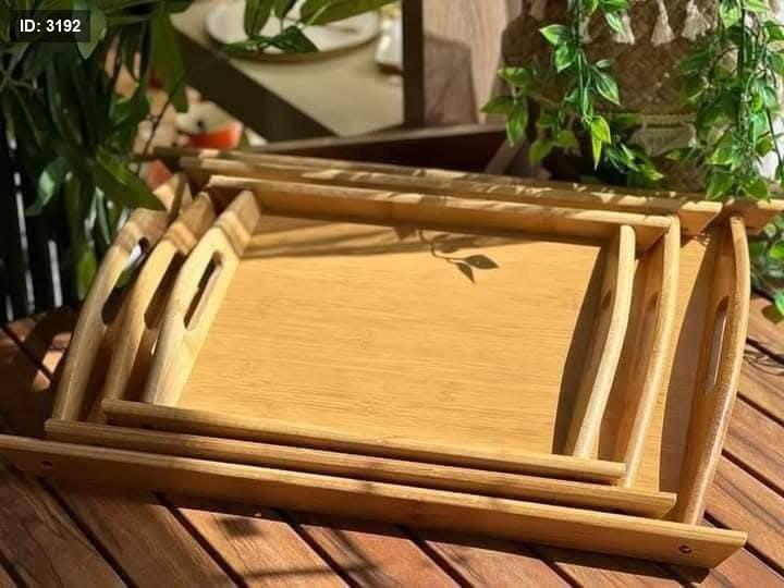 طقم صواني خشب بامبو مكون من 3 قطع: