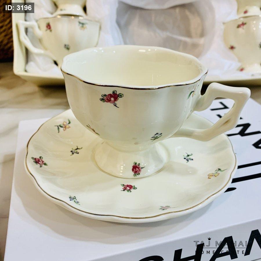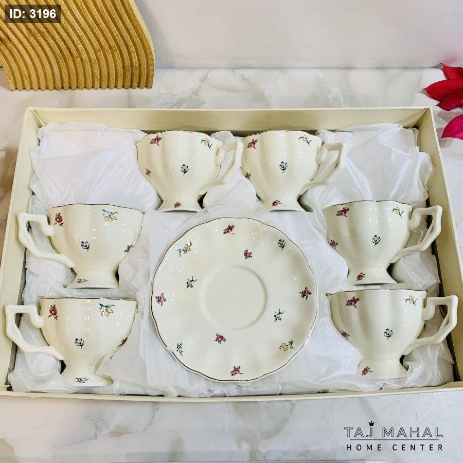 - الطقم مكون من 6 أكواب و6 صحون (طبق صغير).