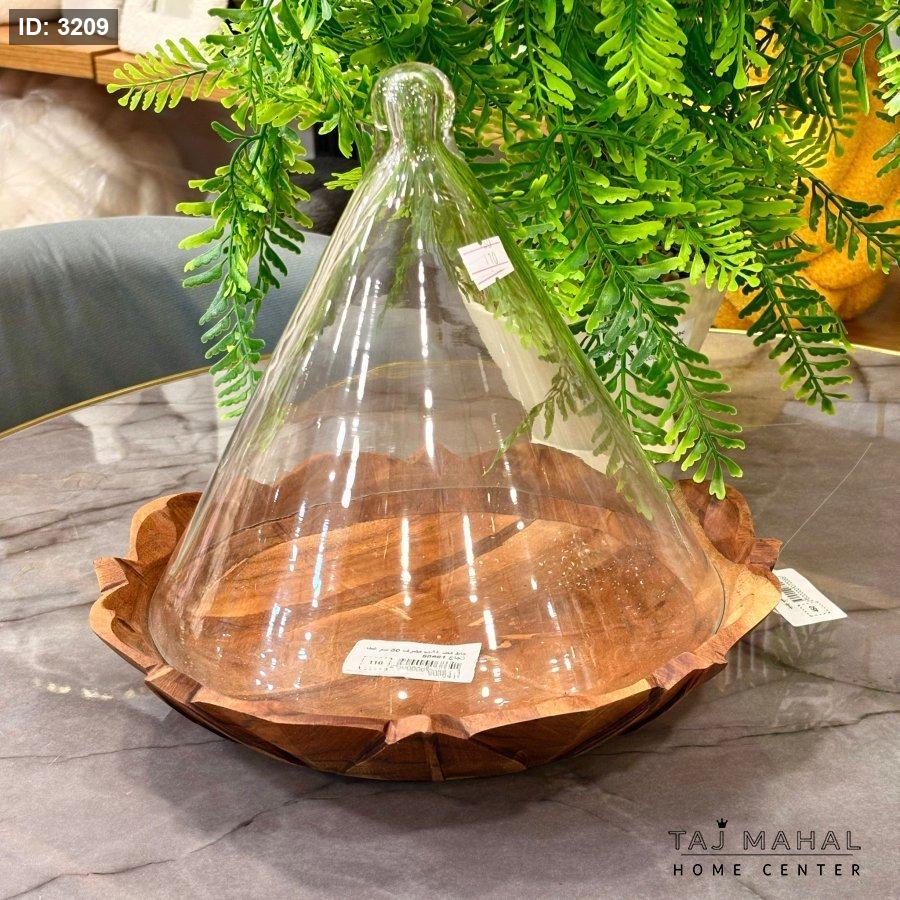 مضيفة معمول خشب هندي غطاء زجاج قطر 27 سم