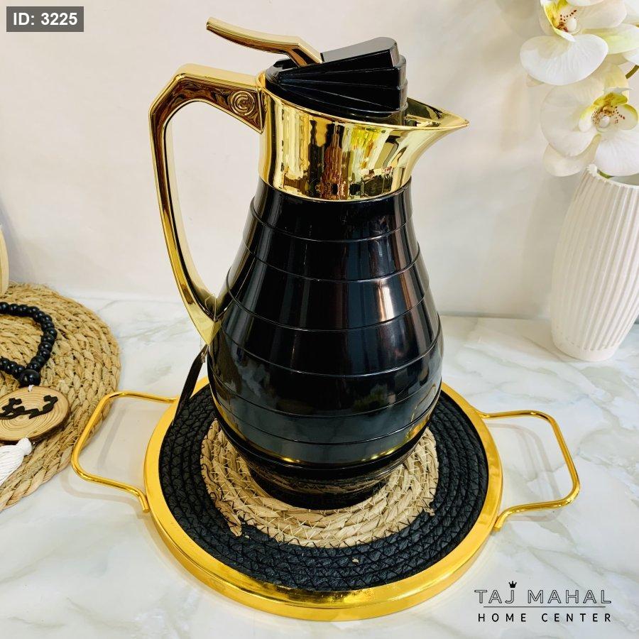 ترمس قهوة بتصميم انيق بلون اسود وذهبي
