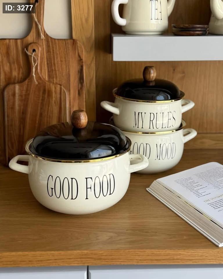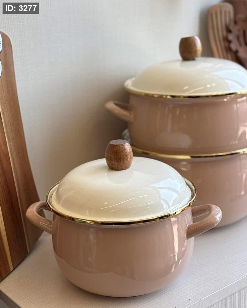 المادة: الطناجر مطلية بالمينا القيشاني عالي الجودة، وهي مادة مقاومة للحرارة وتوزع الحرارة بالتساوي، كما أن سطحها ناعم يمنع التصاق الطعام وسهل التنظيف.