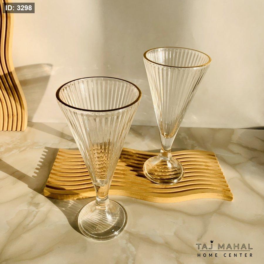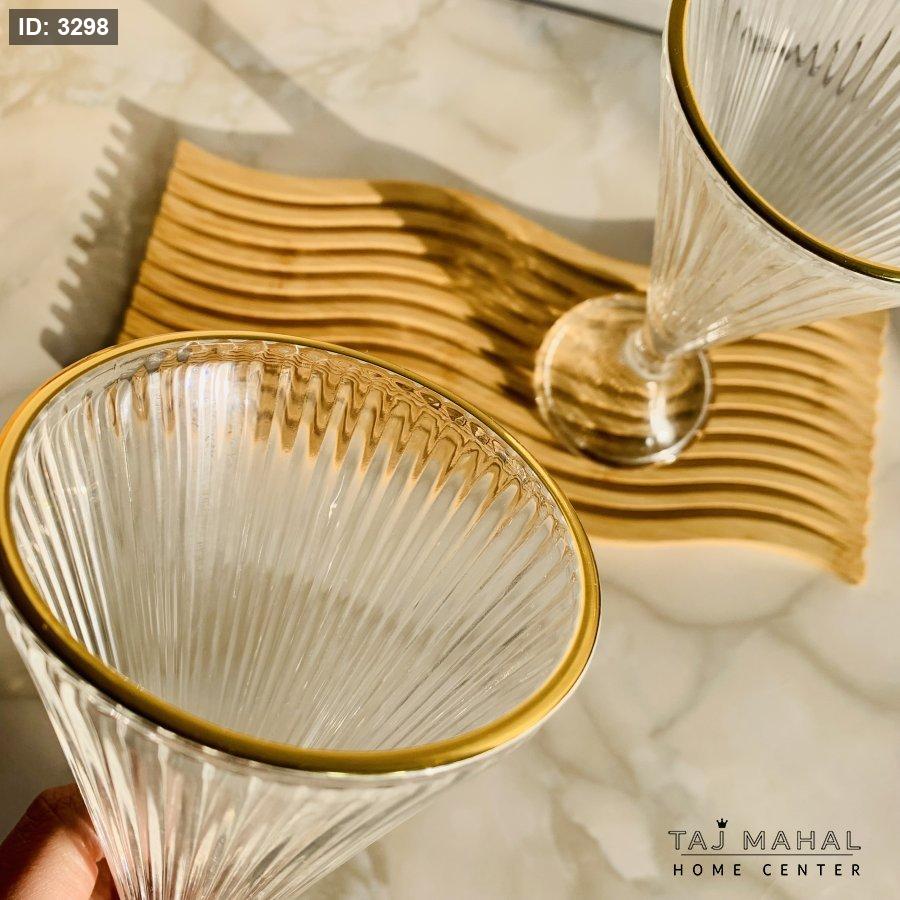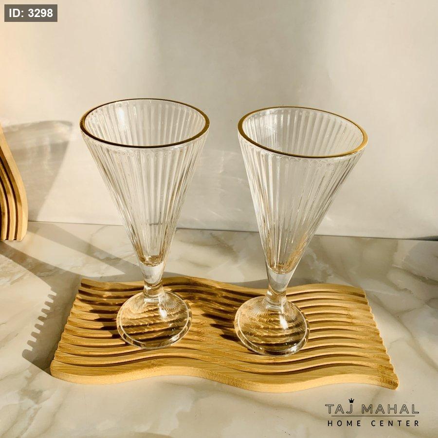 طقم كاسات عصير كريستالي بإطار ذهبي (قطعتين)