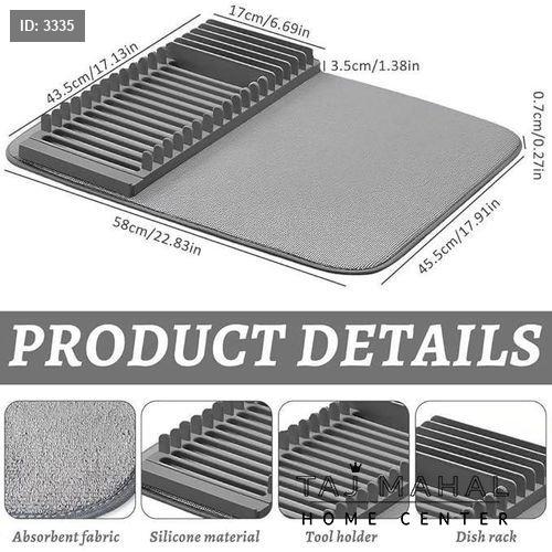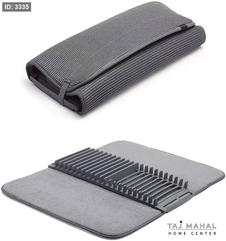 سجادة تجفيف الأطباق مع رف بلاستيكي قابل للطي