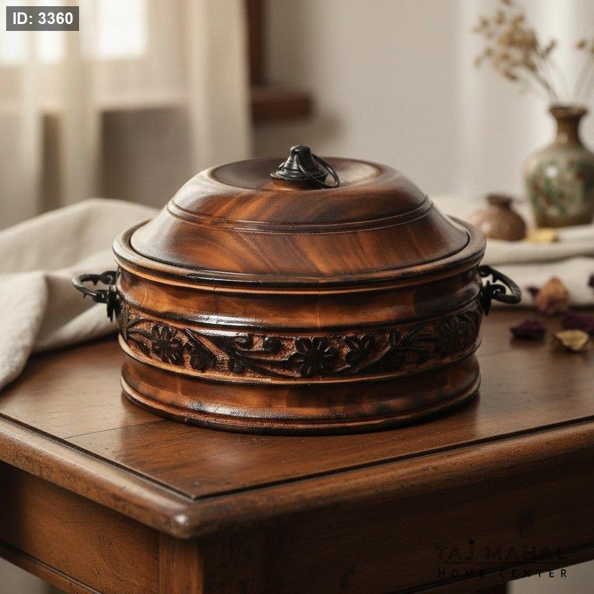 مضيفة خشب هندي بتصميم دائري ومنحوت يدويا