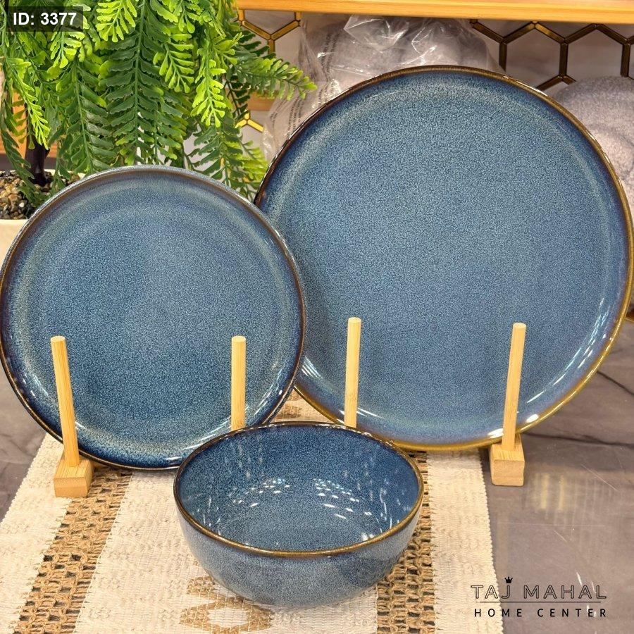 طقم صحون أزرق 18 قطعة احجام كبيرة