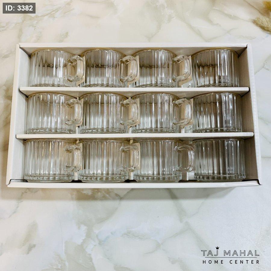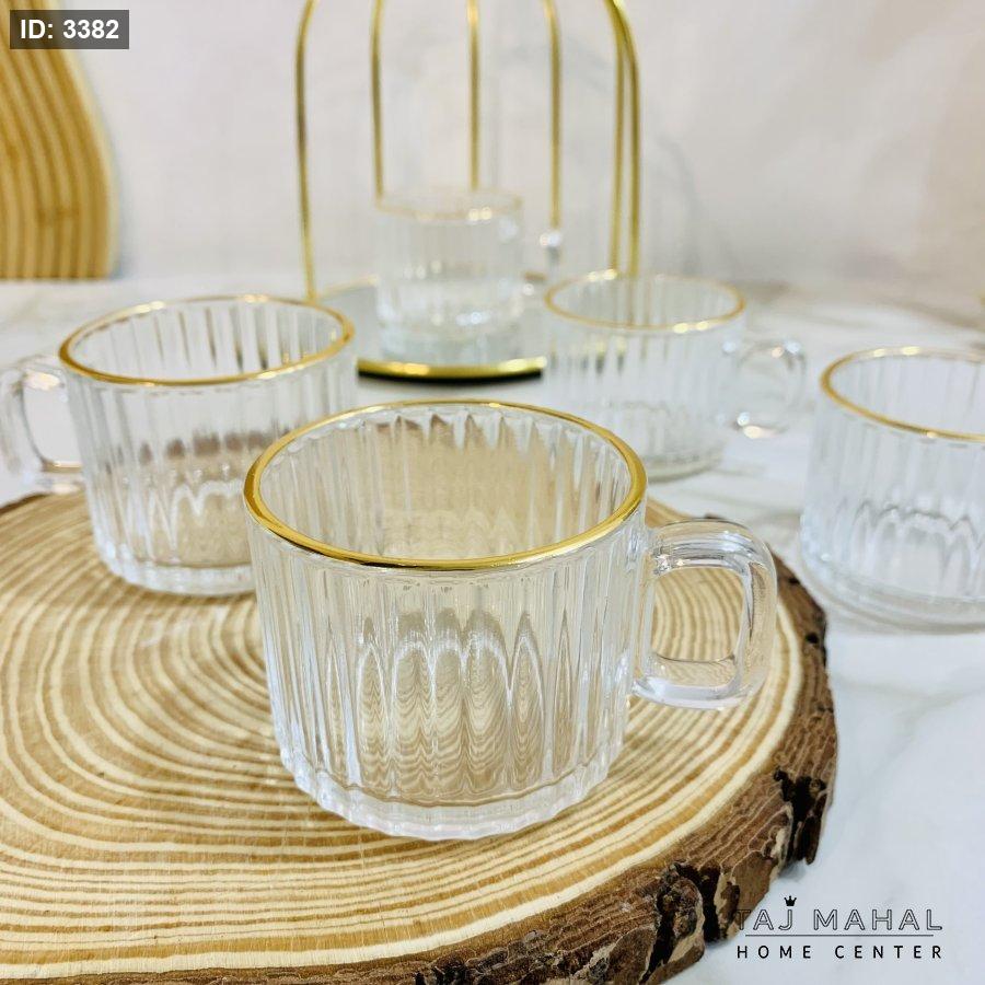طقم فناجين قهوة ١٢ قطعة محزز ذهبي