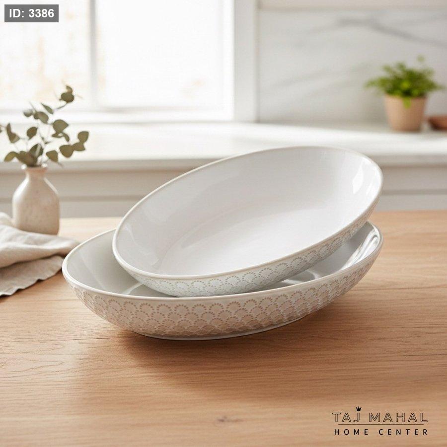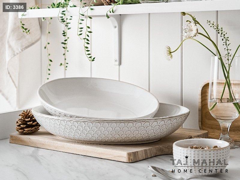 أوعية تقديم بيضاوية كبيرة. هذه المجموعة عادة ما تتكون من وعاءين بأحجام محددة لتلبية احتياجات التقديم المختلفة.