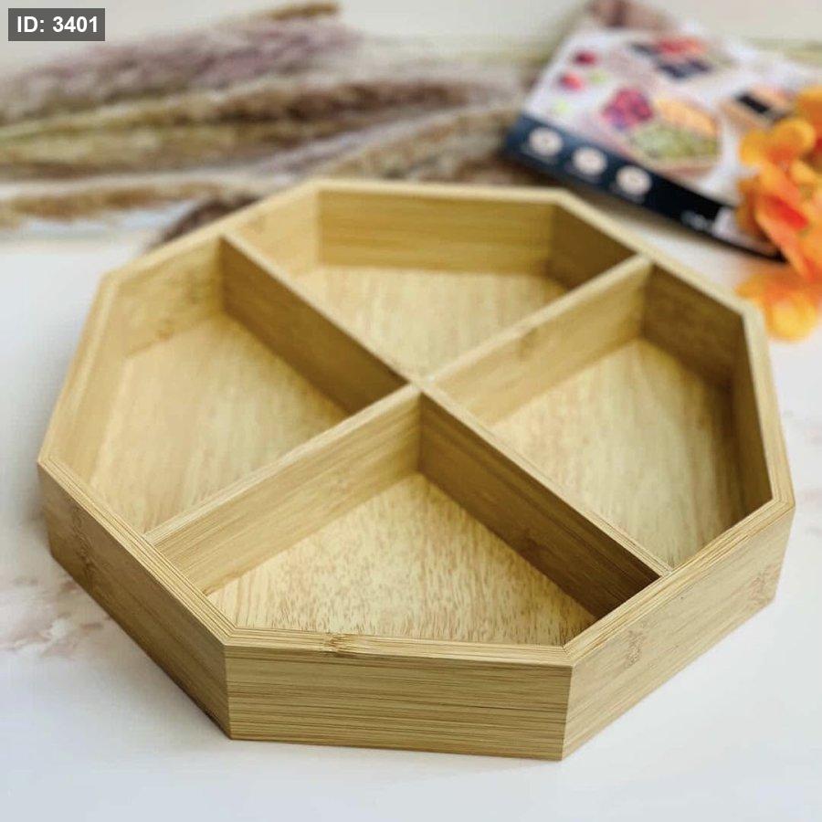 علبة تقديم خشب بامبو اربع اقسام بشكل سداسي