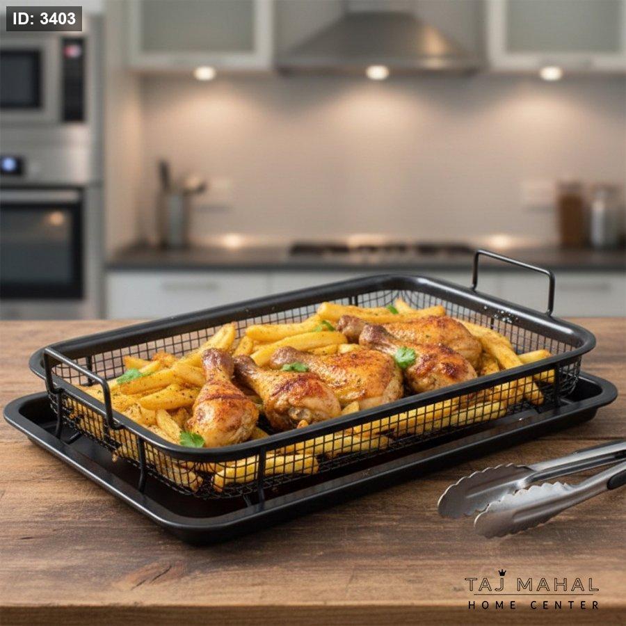 حوّل فرنك العادي إلى مقلاة هوائية متطورة مع هذه المجموعة المكونة من قطعتين والمصنوعة من الستانلس ستيل المتين. تم تصميم السلة الشبكية لضمان توزيع الحرارة بزاوية 360 درجة، مما يمنحك طعامًا مقرمشًا وذهبيًا من جميع الجوانب دون الحاجة للتقليب. مثالية للقلي الصحي باستخدام كمية أقل من الزيت، كما أن الصينية السفلية تلتقط أي قطرات دهون لسهولة التنظيف. المجموعة آمنة تمامًا للغسل في غسالة الأطباق.