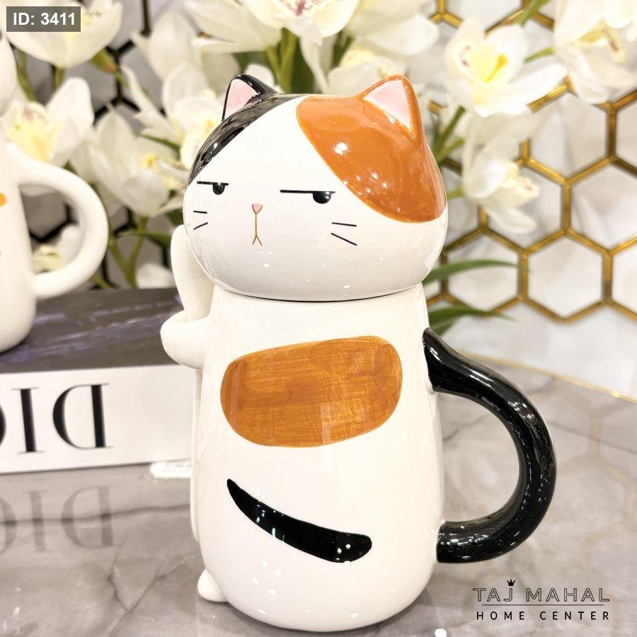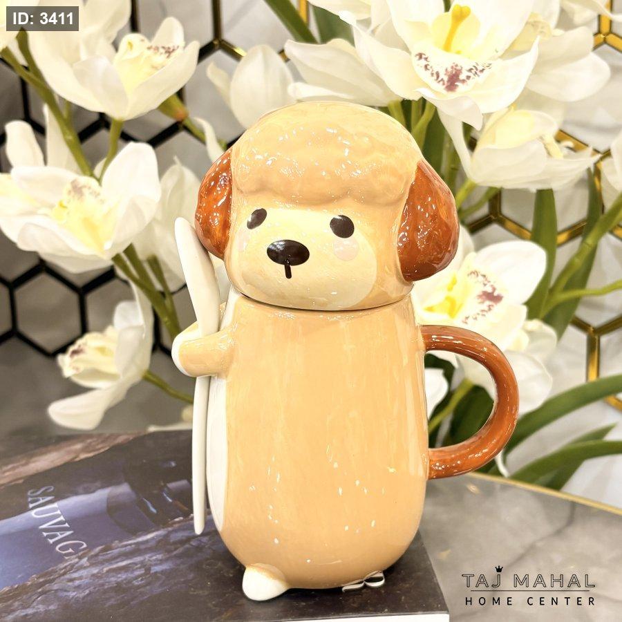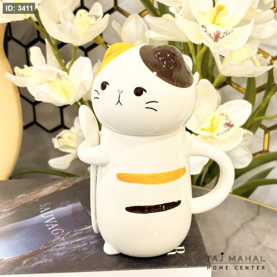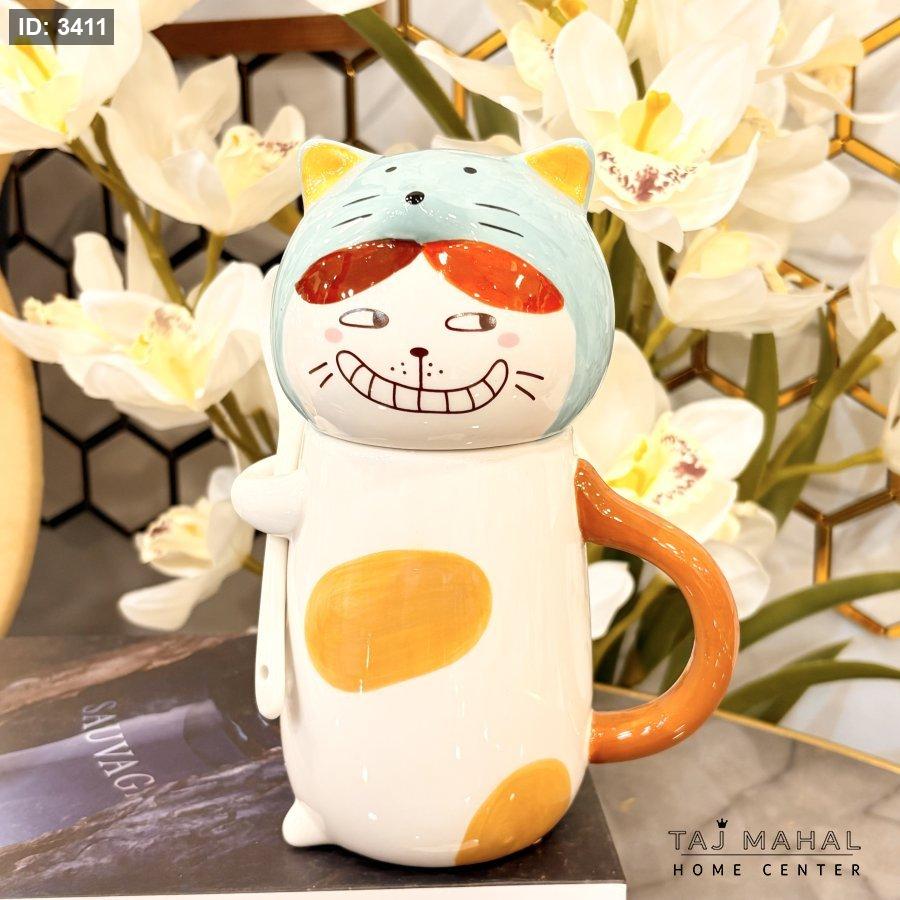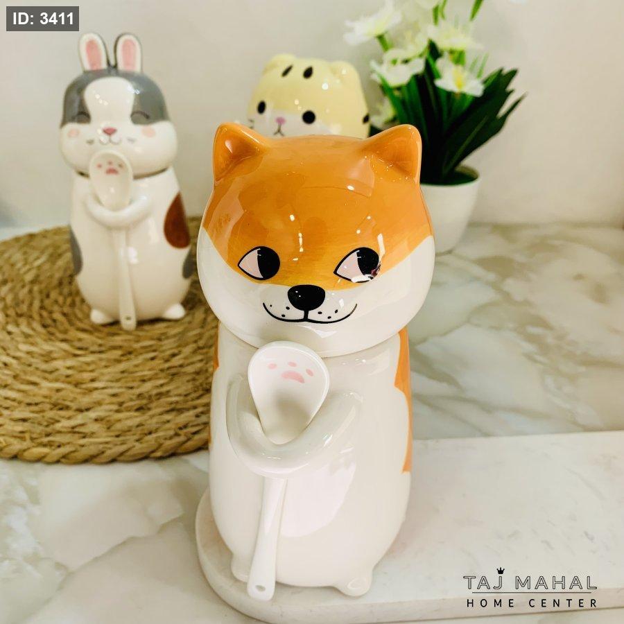 مجات سيراميك لطيفة بتصاميم حيوانات مع ملعقة وغطاء