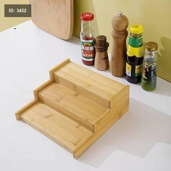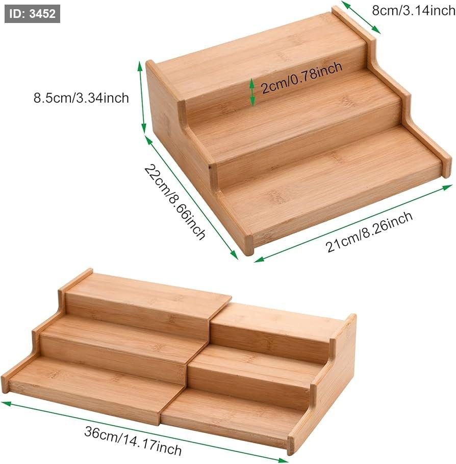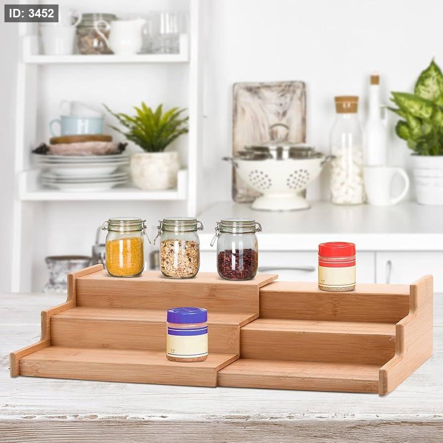 رف توابل من خشب البامبو 3 طبقات قابل للتمدد
