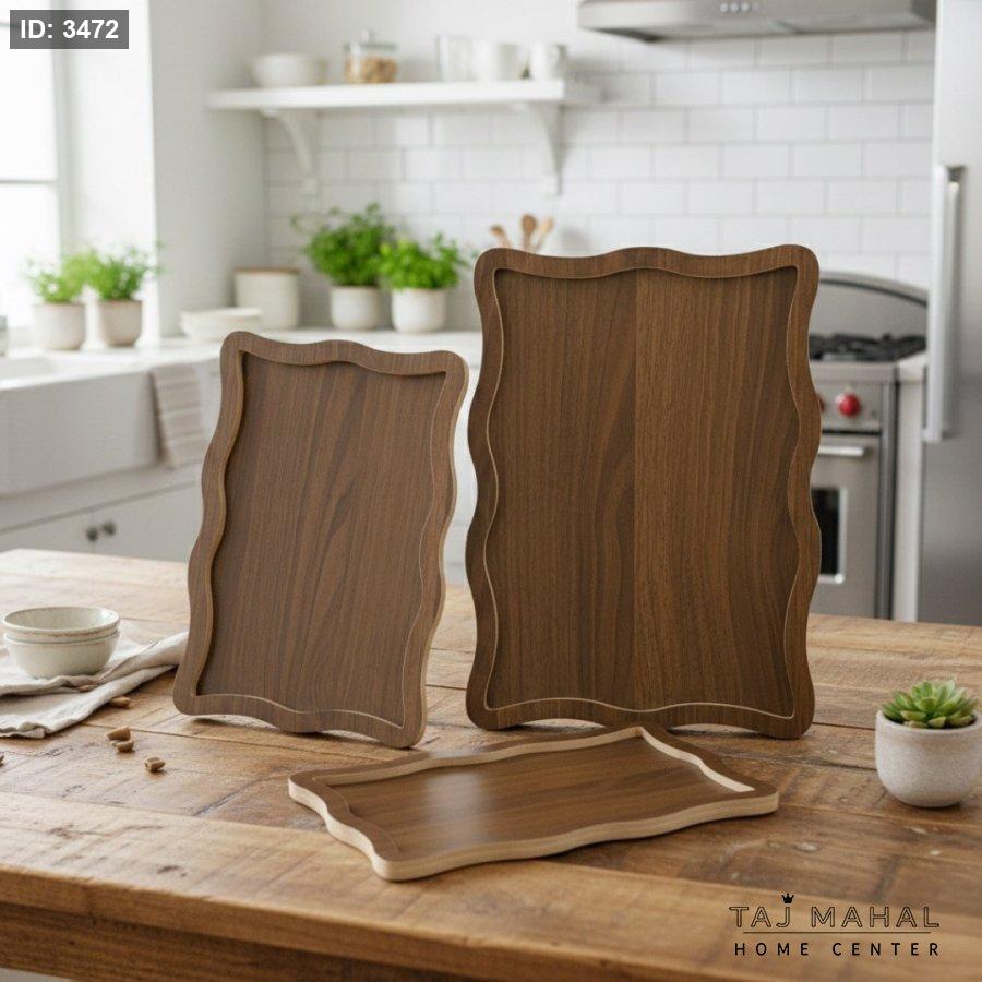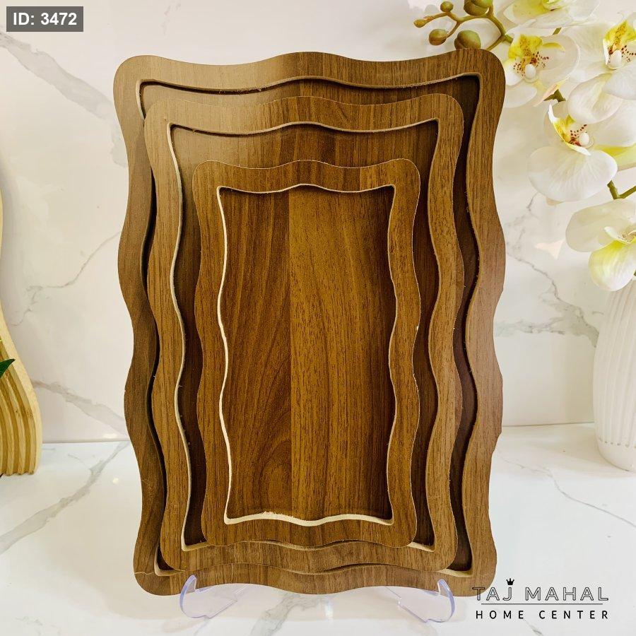 صواني تقديم خشبية بحواف مموجة ٣ قطع
