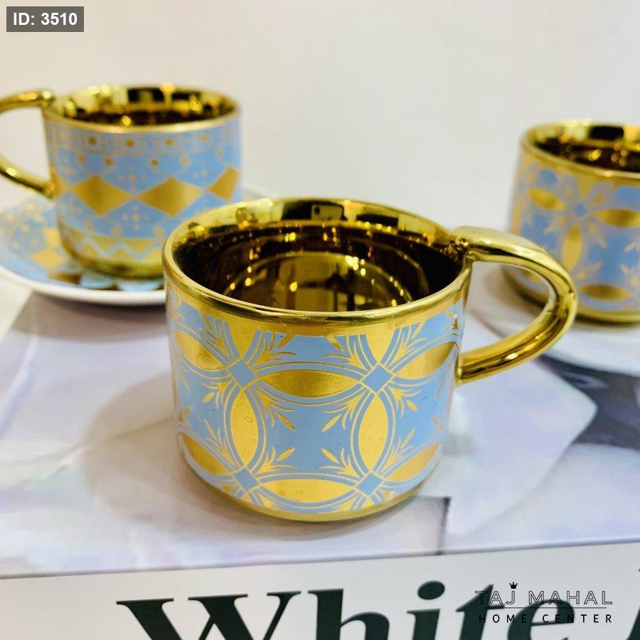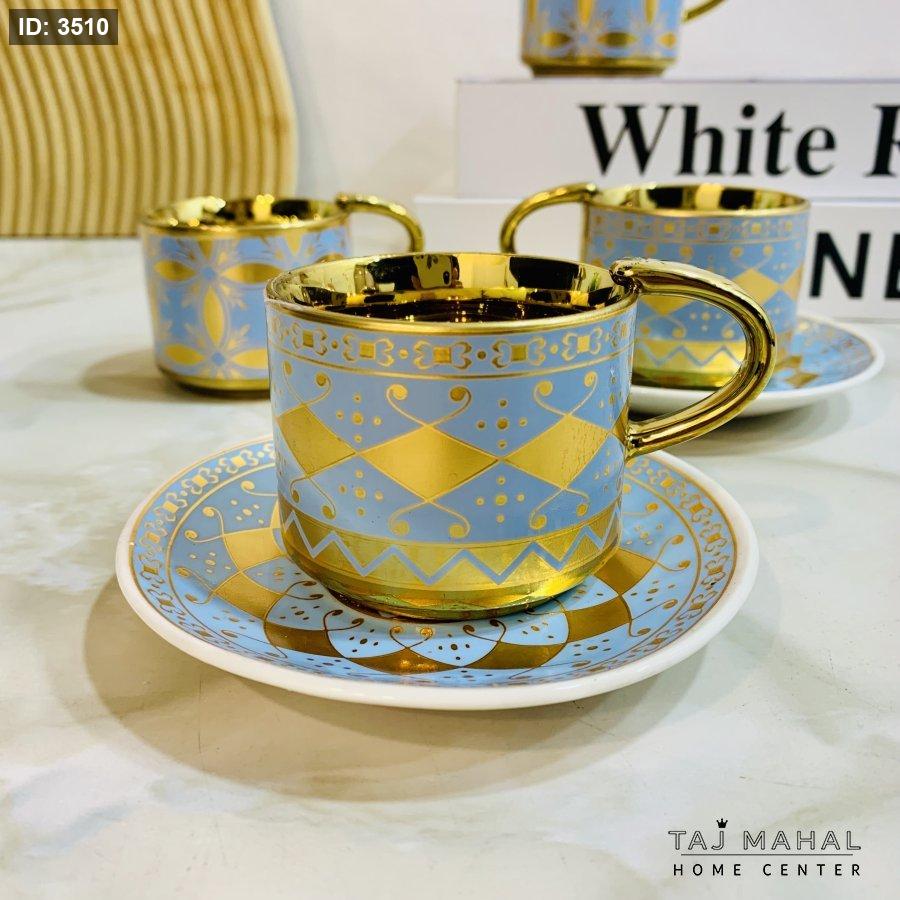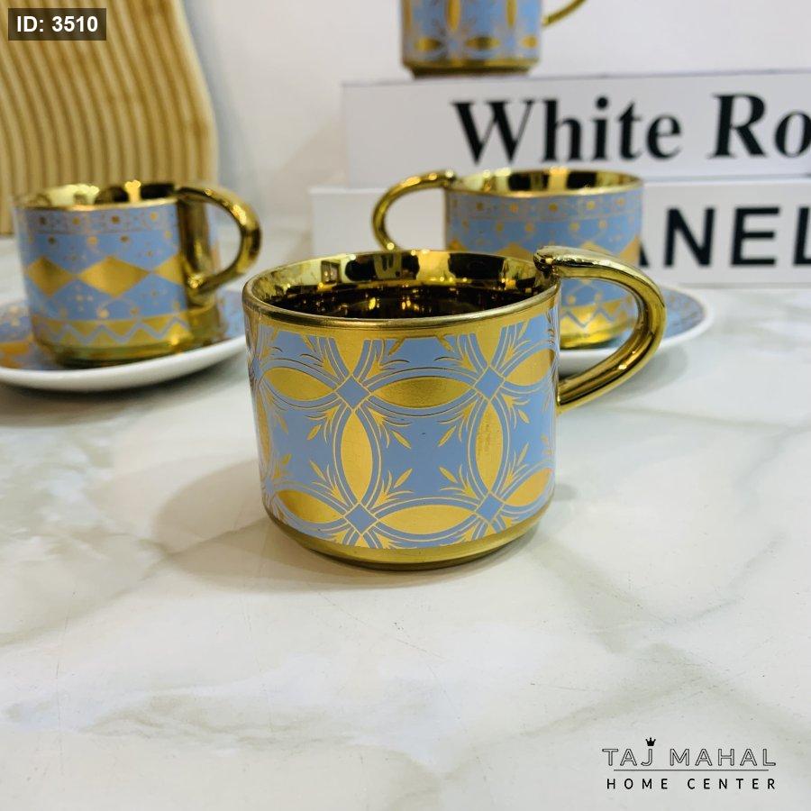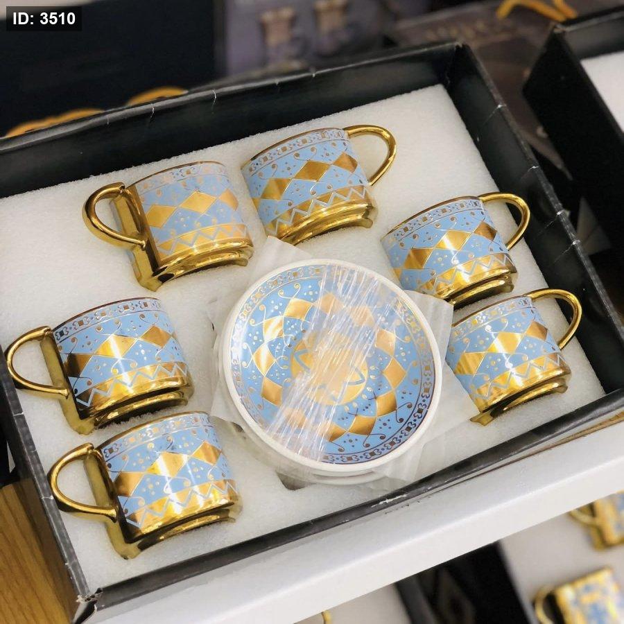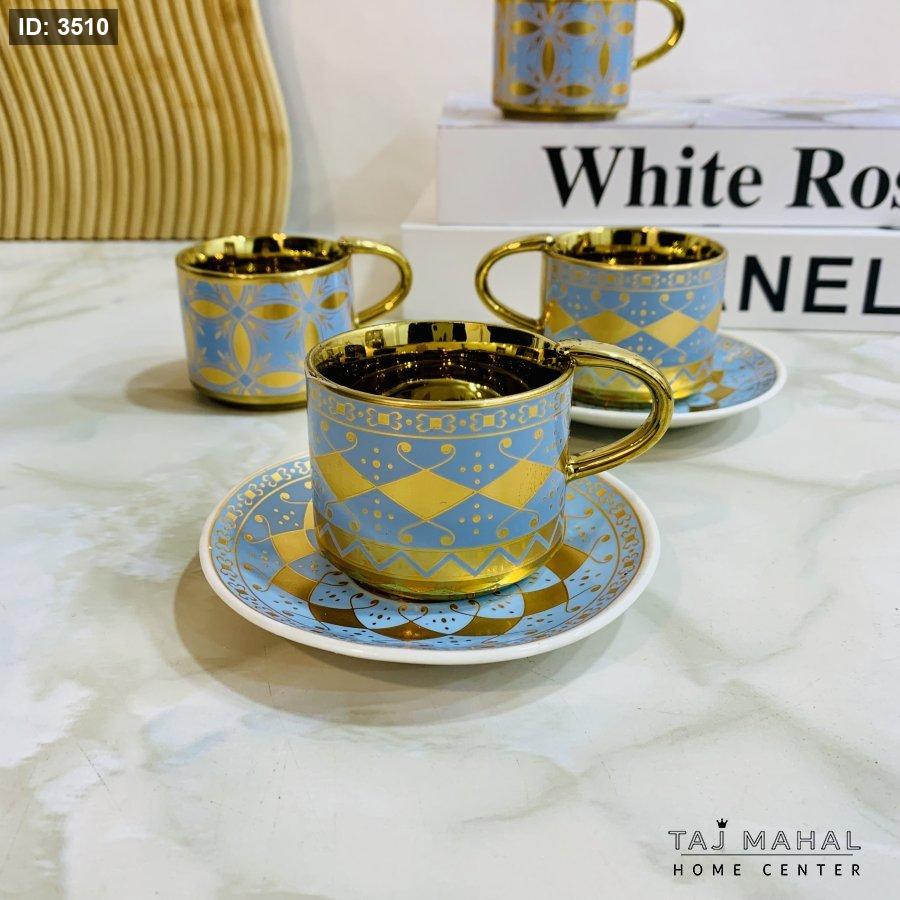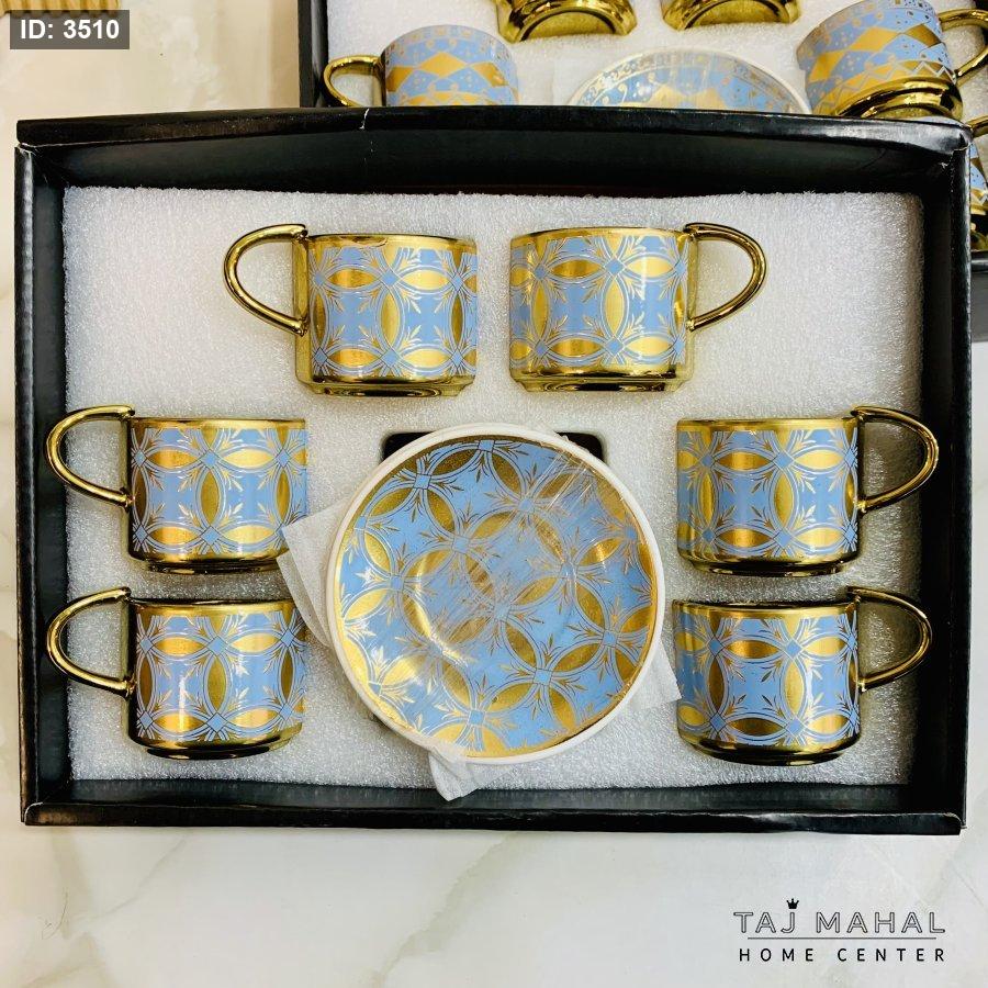 طقم 6 فناجين بورسلان بنقش ذهبي وازرق