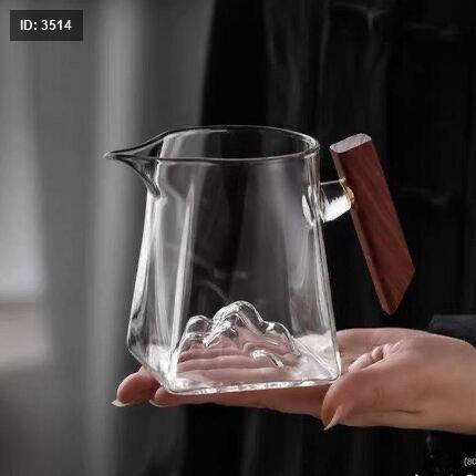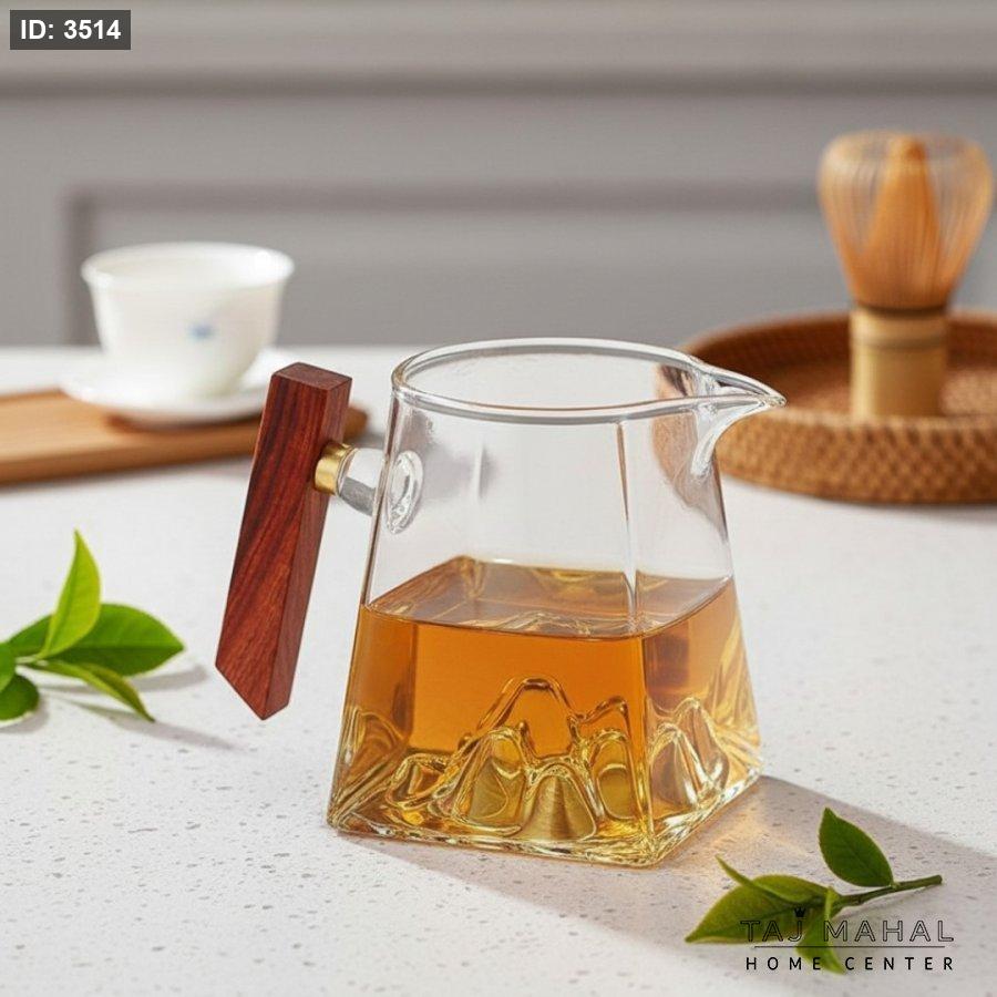 إبريق زجاجي بيد خشبية وتصميم مميز