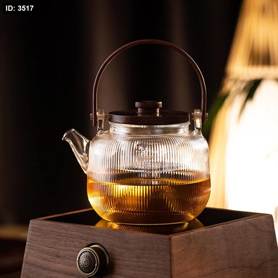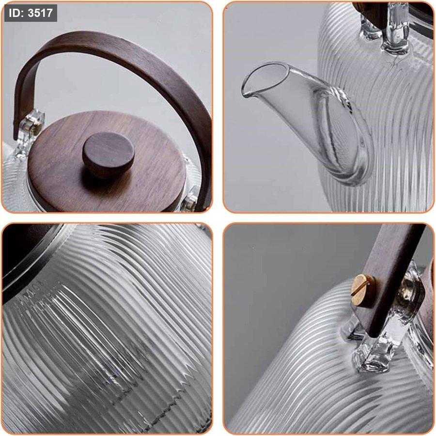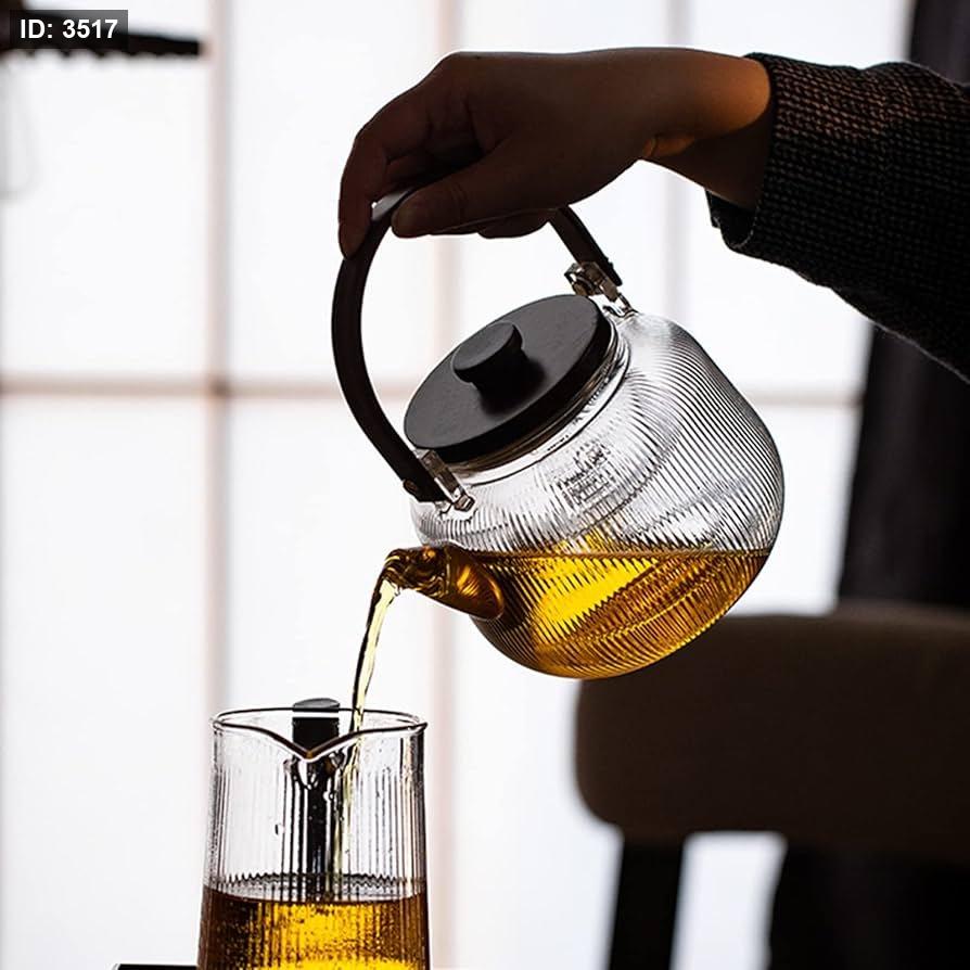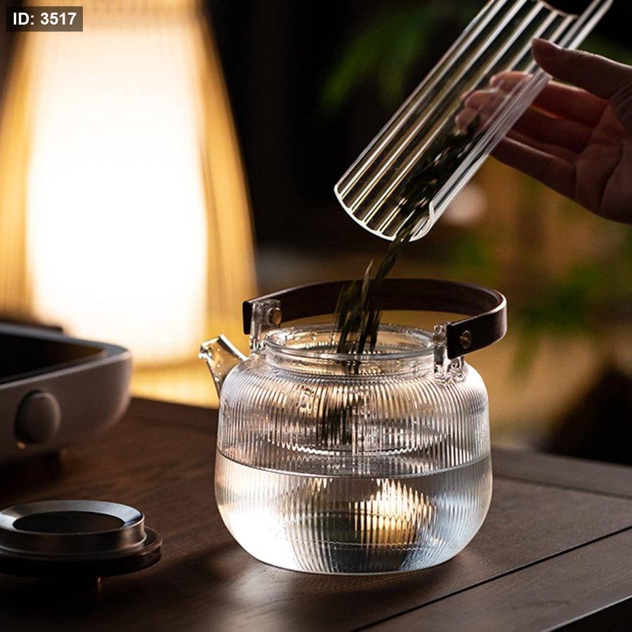 إبريق شاي زجاجي أنيق وعملي بتصميم عصري يجمع بين زجاج البورسليكات المقاوم للحرارة ولمسة الخشب الطبيعي الفاخرة. مثالي لتحضير وتقديم مختلف أنواع الشاي والأعشاب، ويتميز بمصفاة داخلية قابلة للإزالة لسهولة الاستخدام والتنظيف.