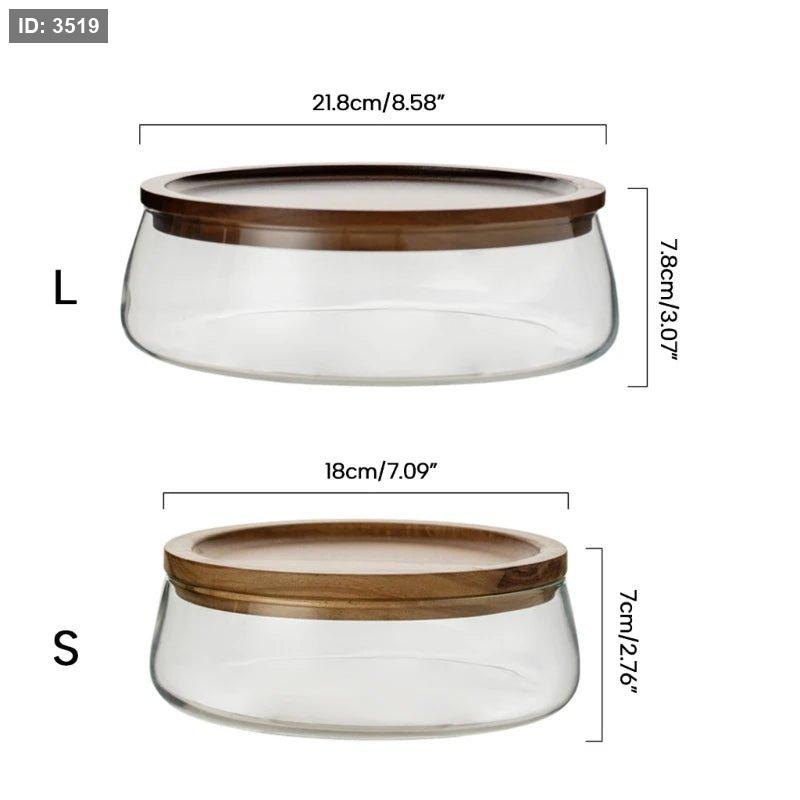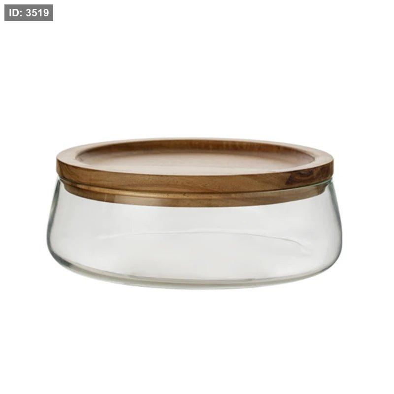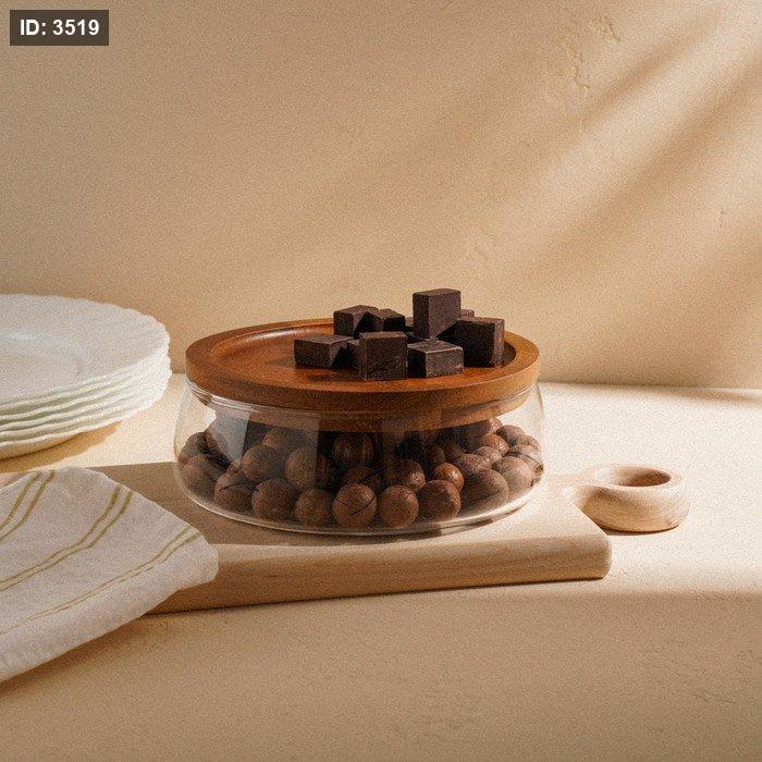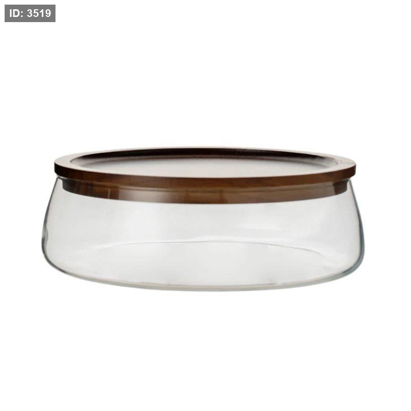 علبة تقديم زجاجية مع غطاء خشبي