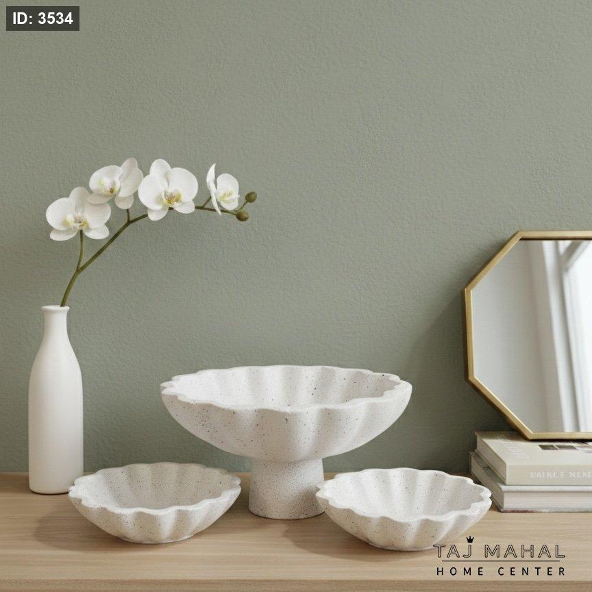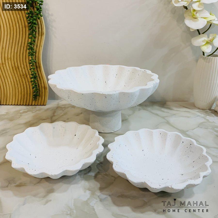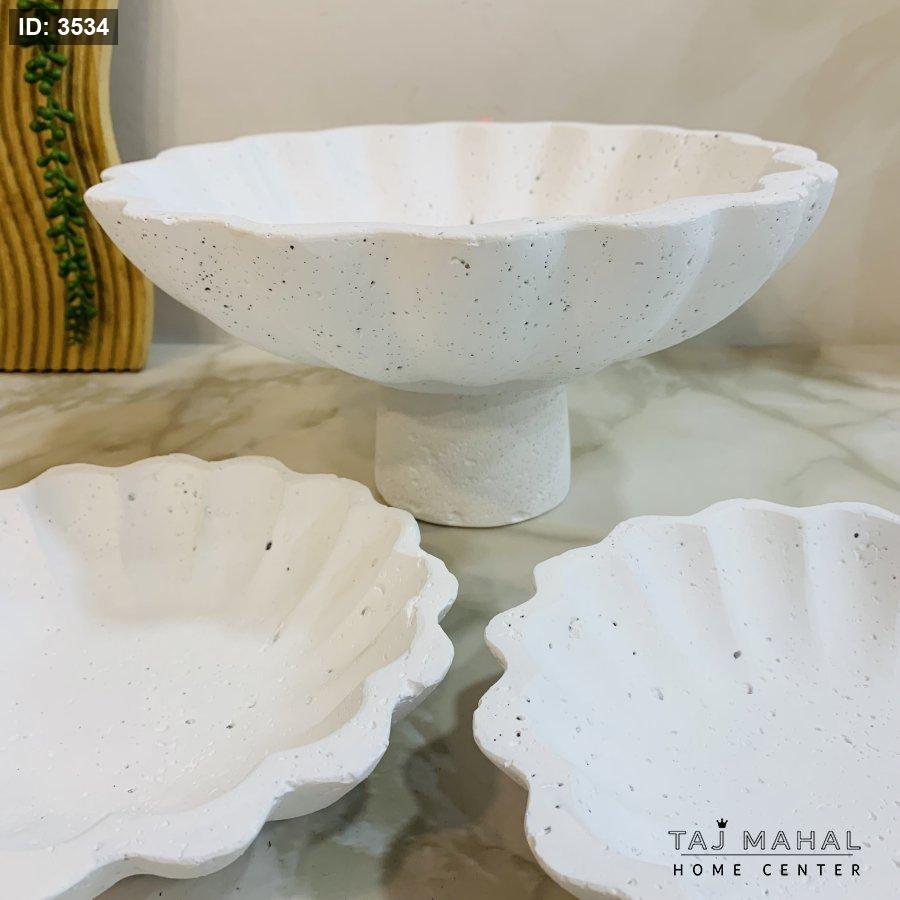 طبق تقديم مع قاعدة 29*15سم + صحنين فواكه 20سم ابيض