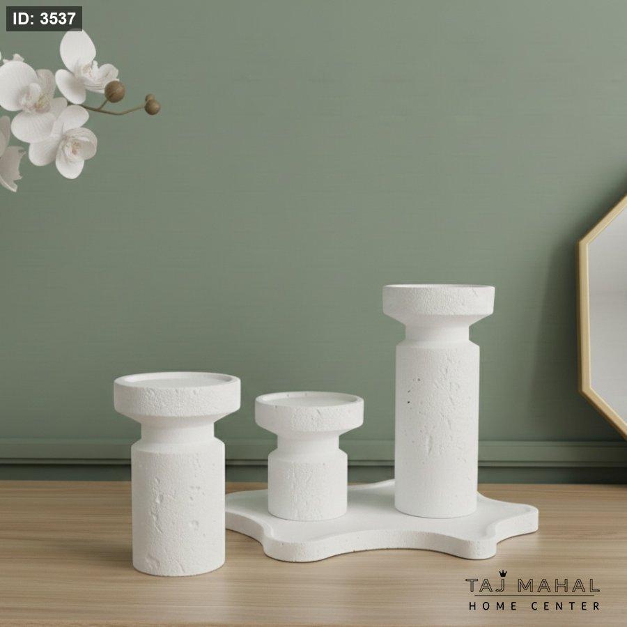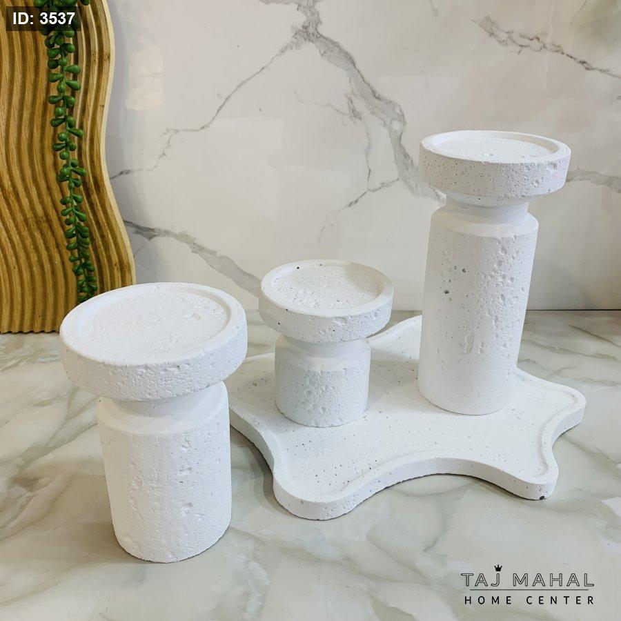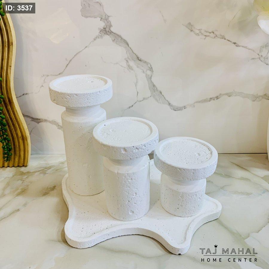 طقم ديكور من شمعدنات وصينية من الجبصين