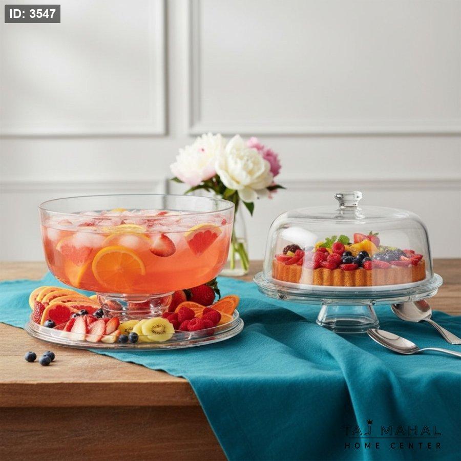 ستاند تقديم زجاجي متعدد الاستخدام مع غطاء قبة، يمكن استخدامه لعرض الكيك، الحلويات، الكب كيك، أو كمطبق تقديم أنيق.
