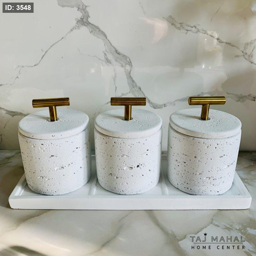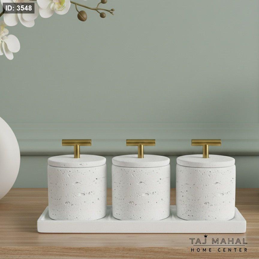 طقم ٣ سكريات مع صينية لون ابيض من الجبصين