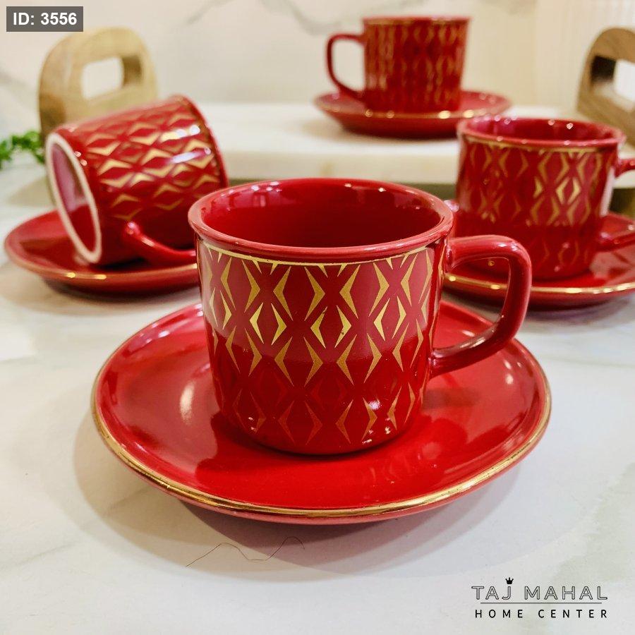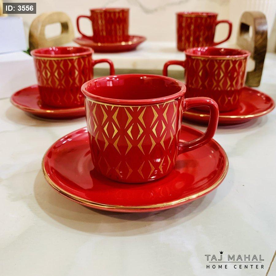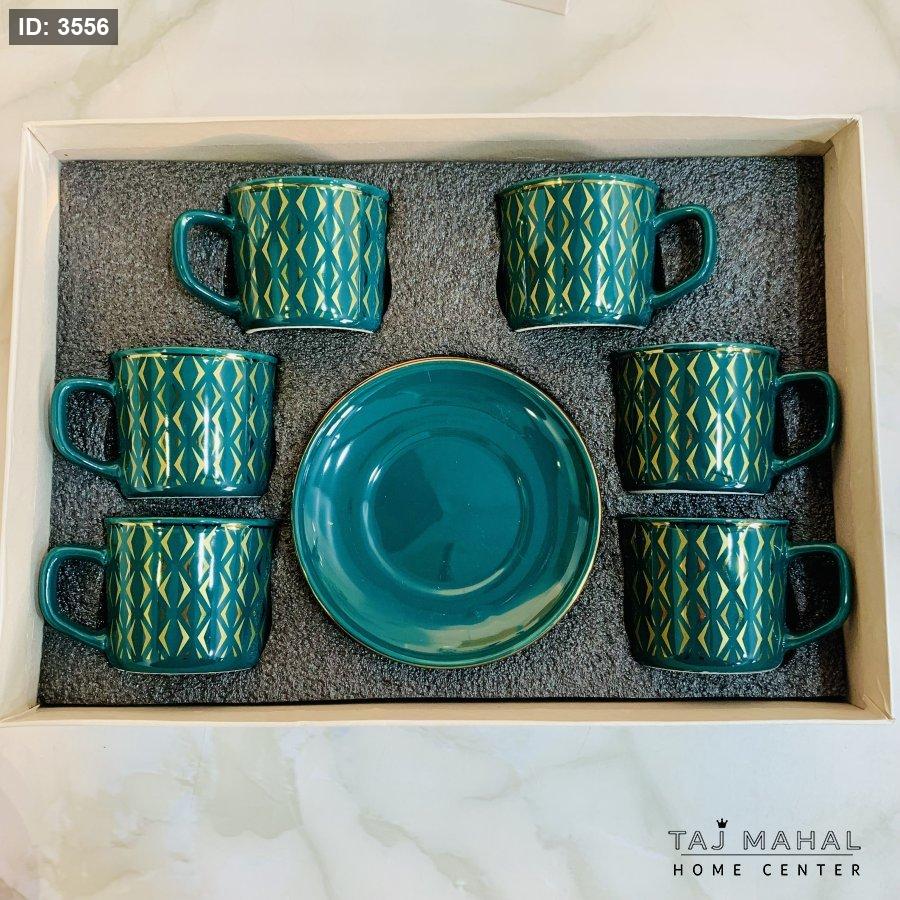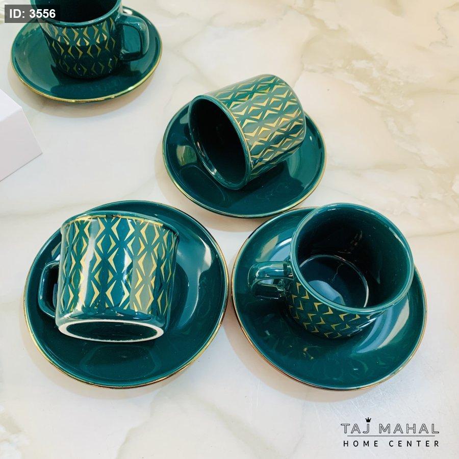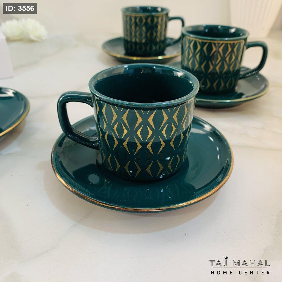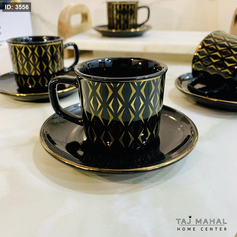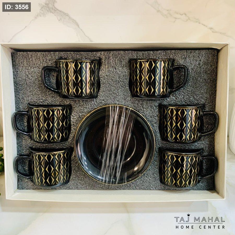 طقم ٦ فناجين قهوة بنقوش هندسية ذهبية