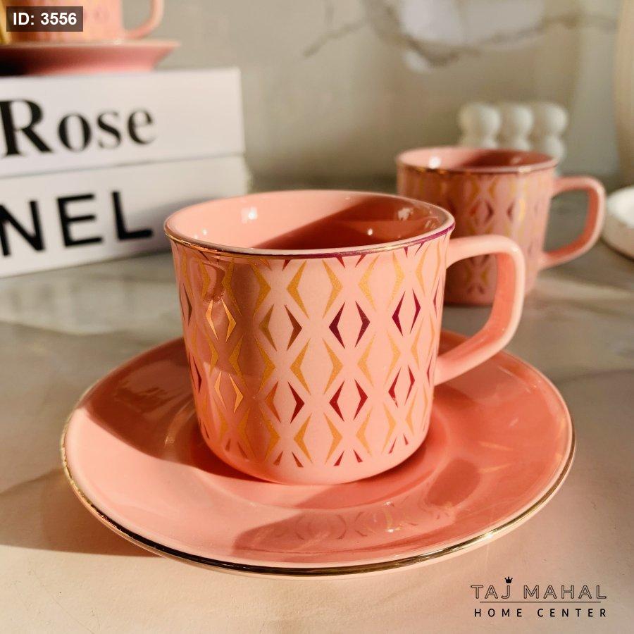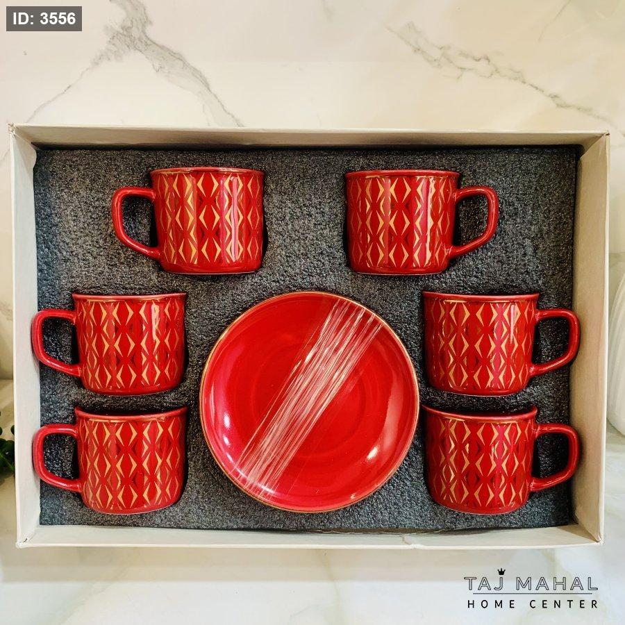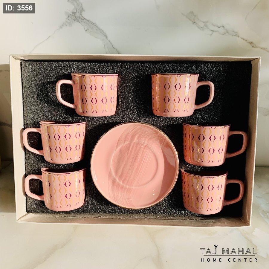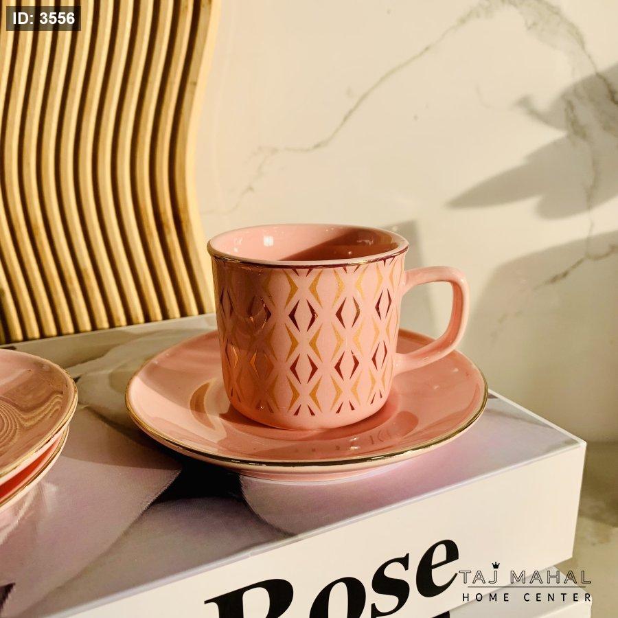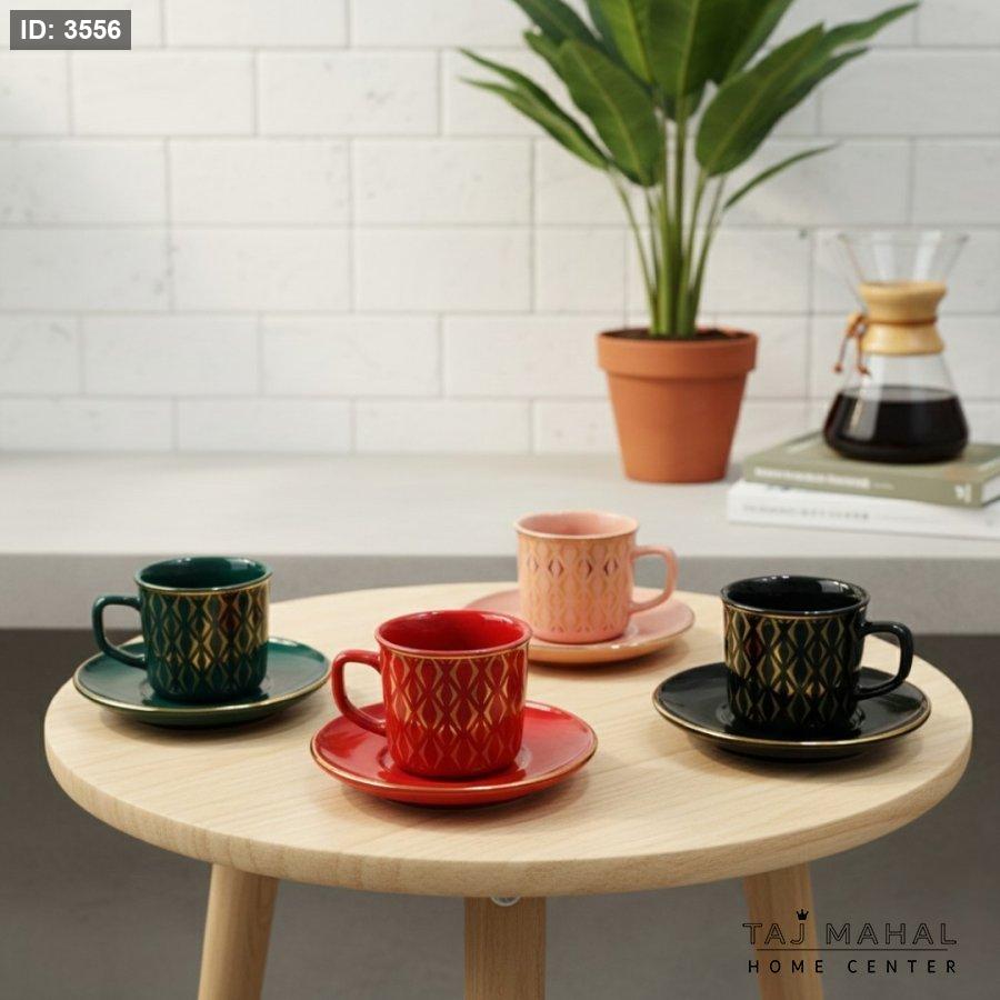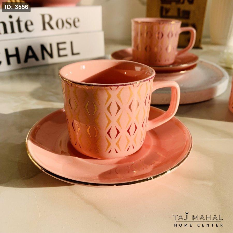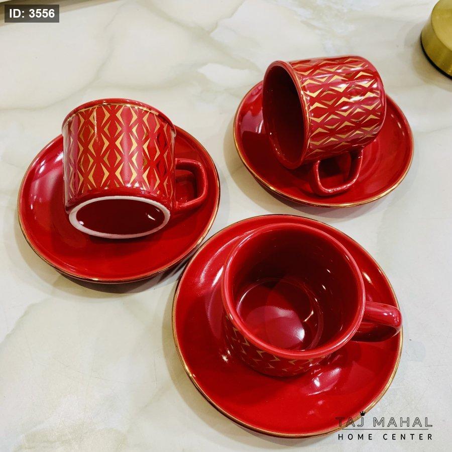 طقم ٦ فناجين قهوة بنقوش هندسية ذهبية