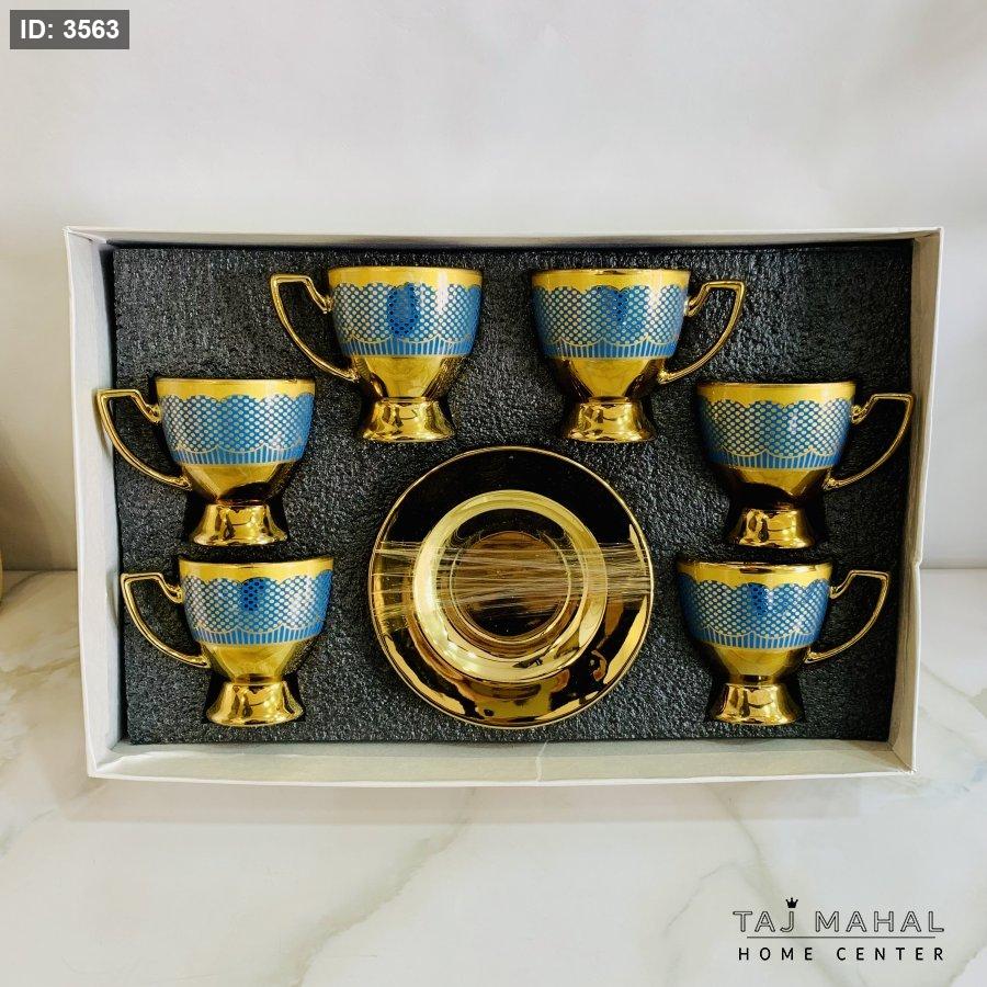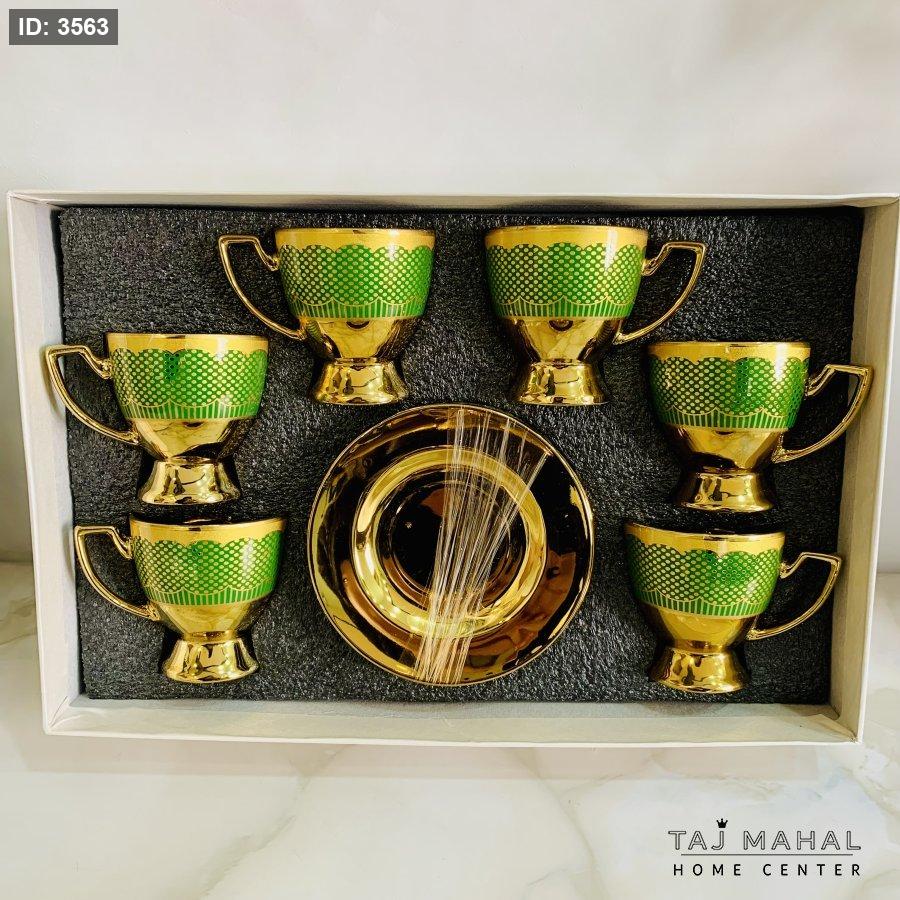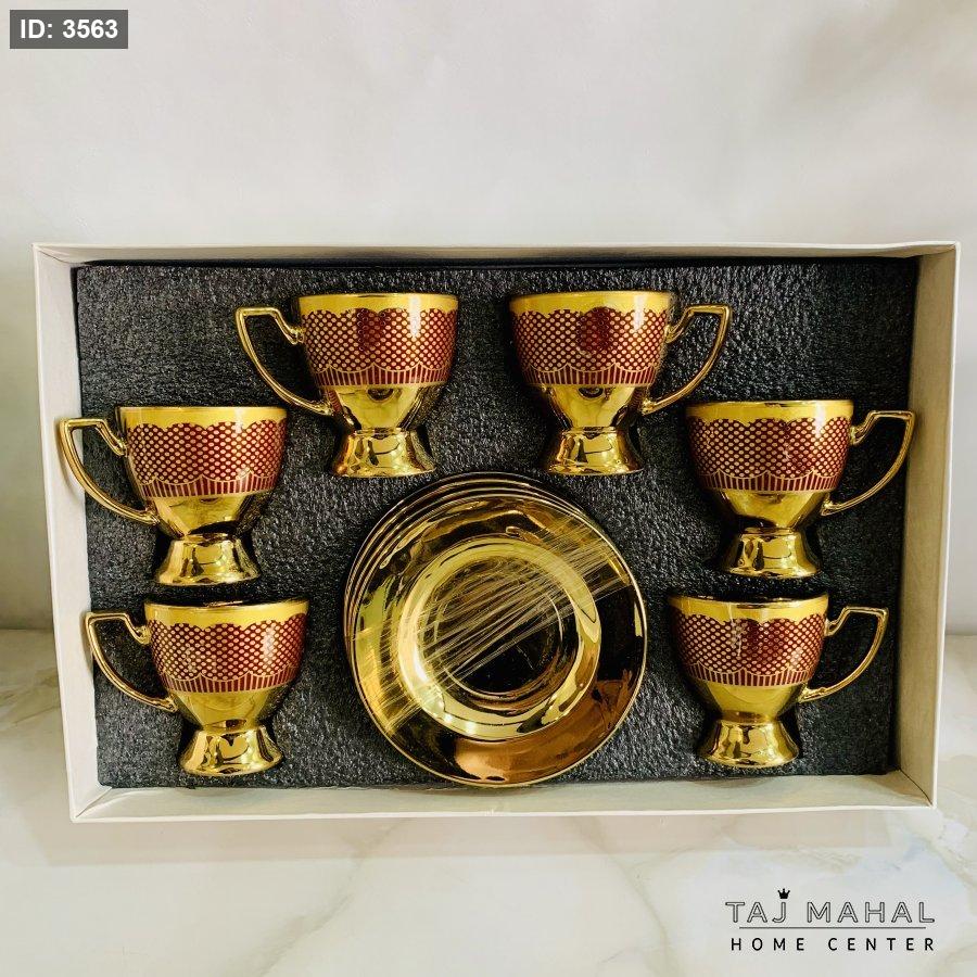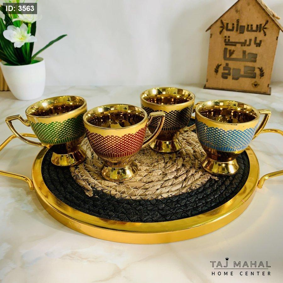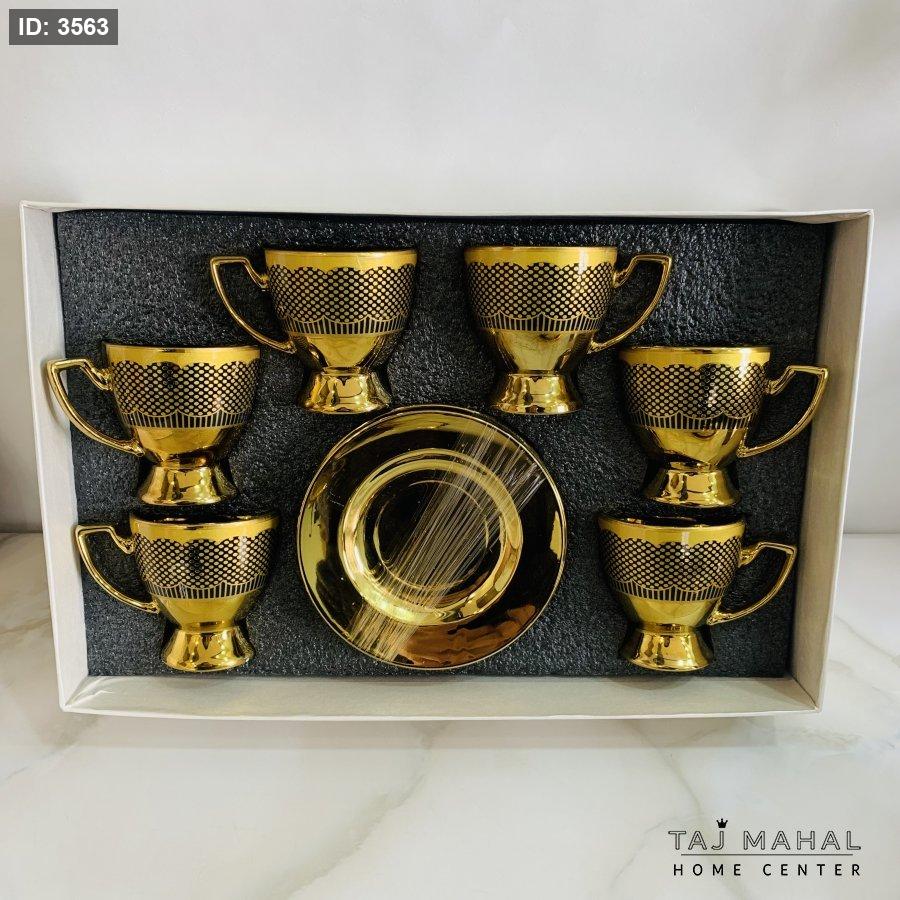 طقم ٦ فناجين قهوة ذهبية مزخرفة