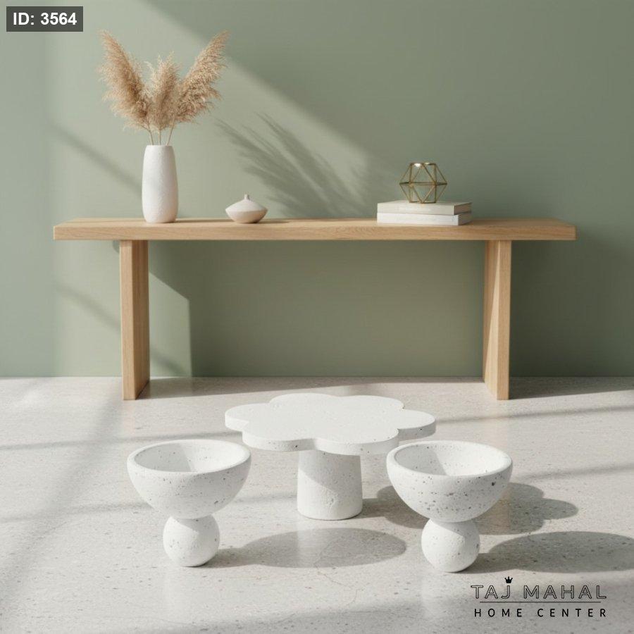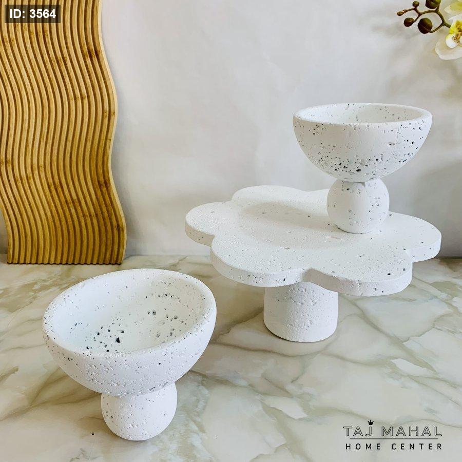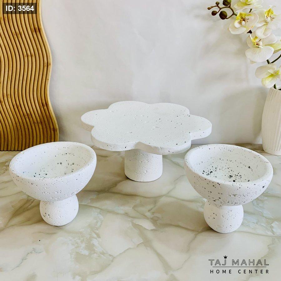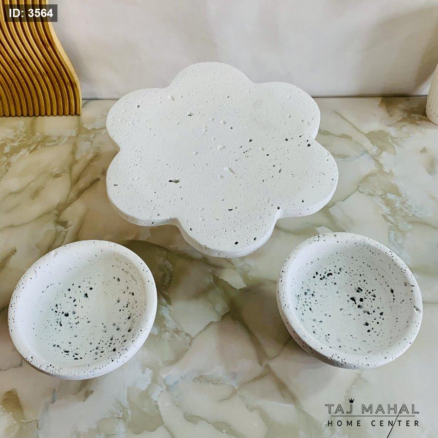 طقم جاط شكل وردة + صحنين مدور مع قاعدة بيضاء