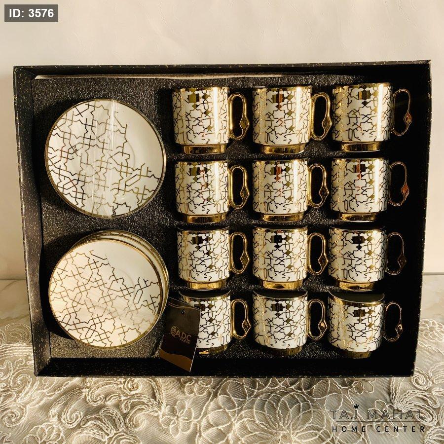 طقم ١٢ فنجان قهوة بورسلان مذهب ومنقوش