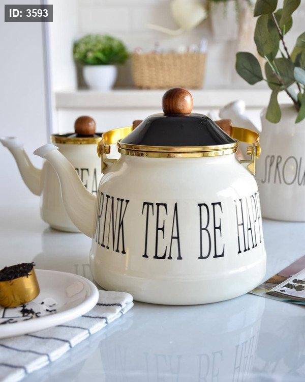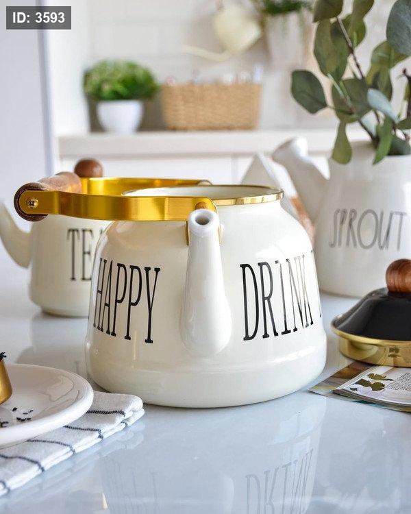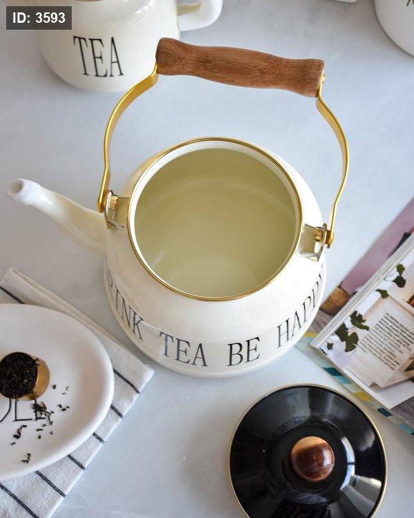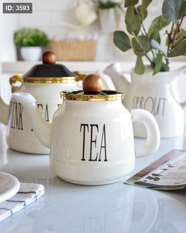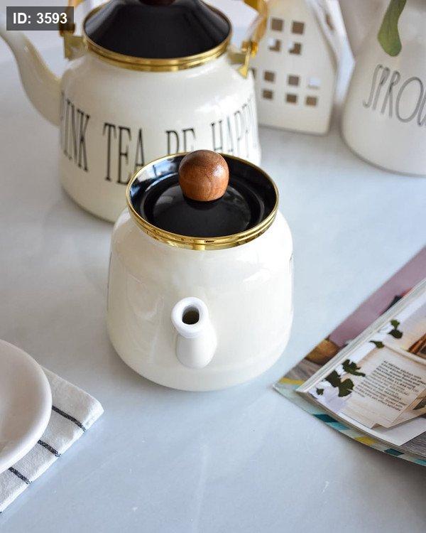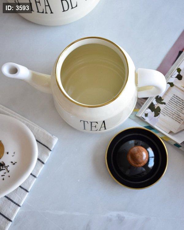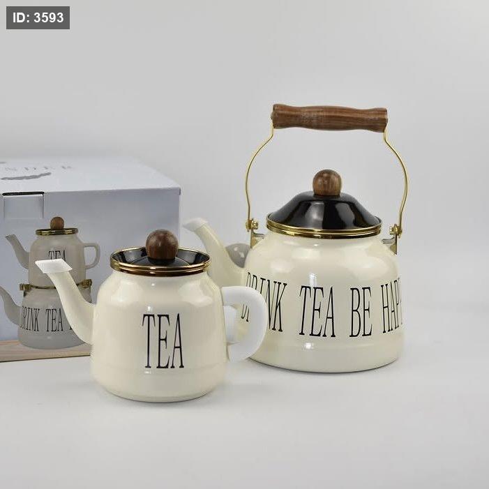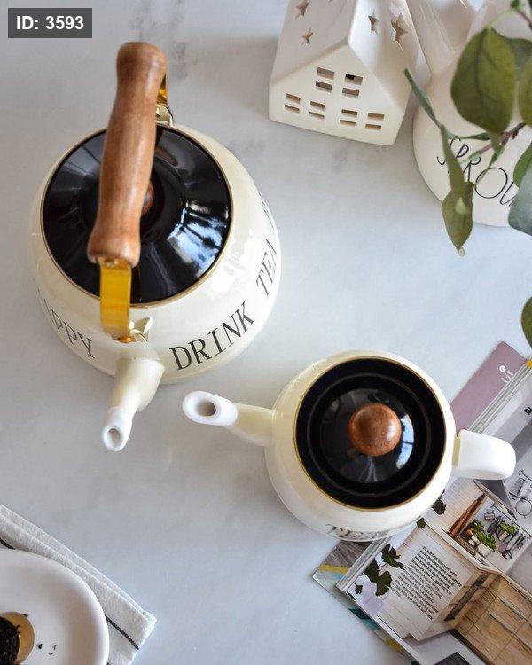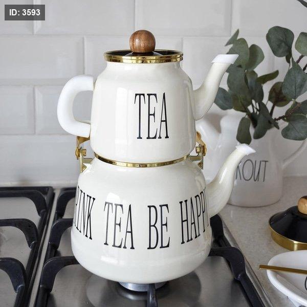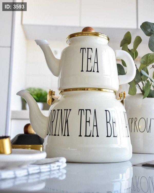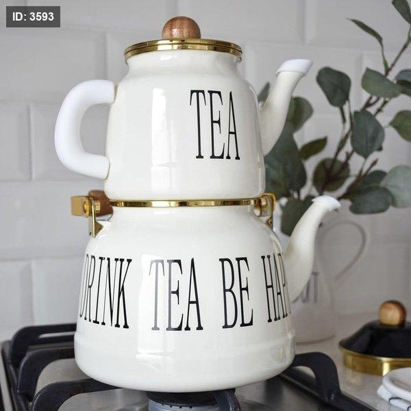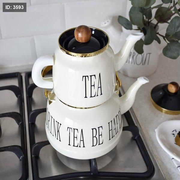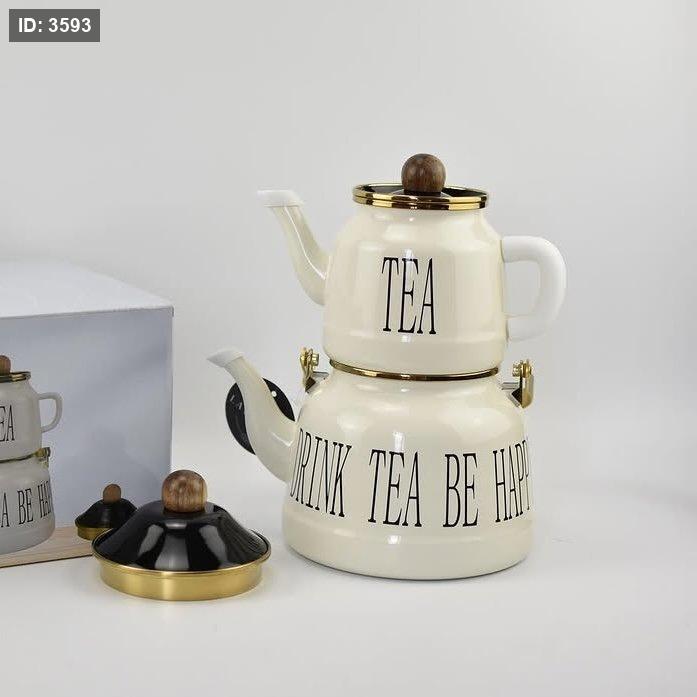 طقم إبريق شاي مزدوج لون أبيض كريمي