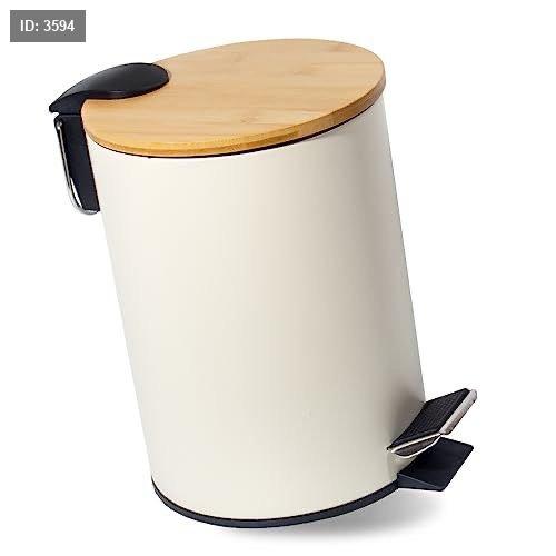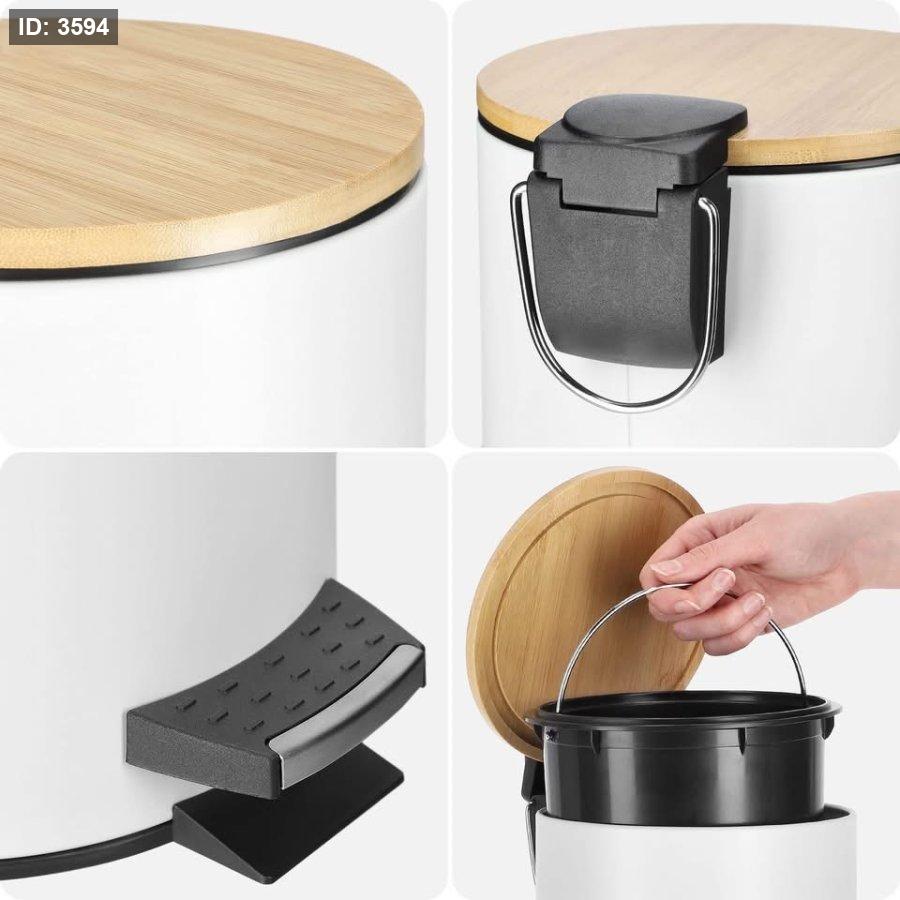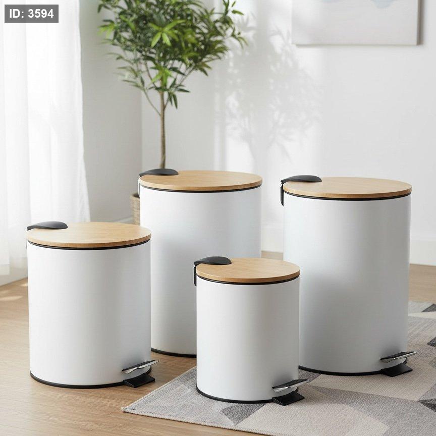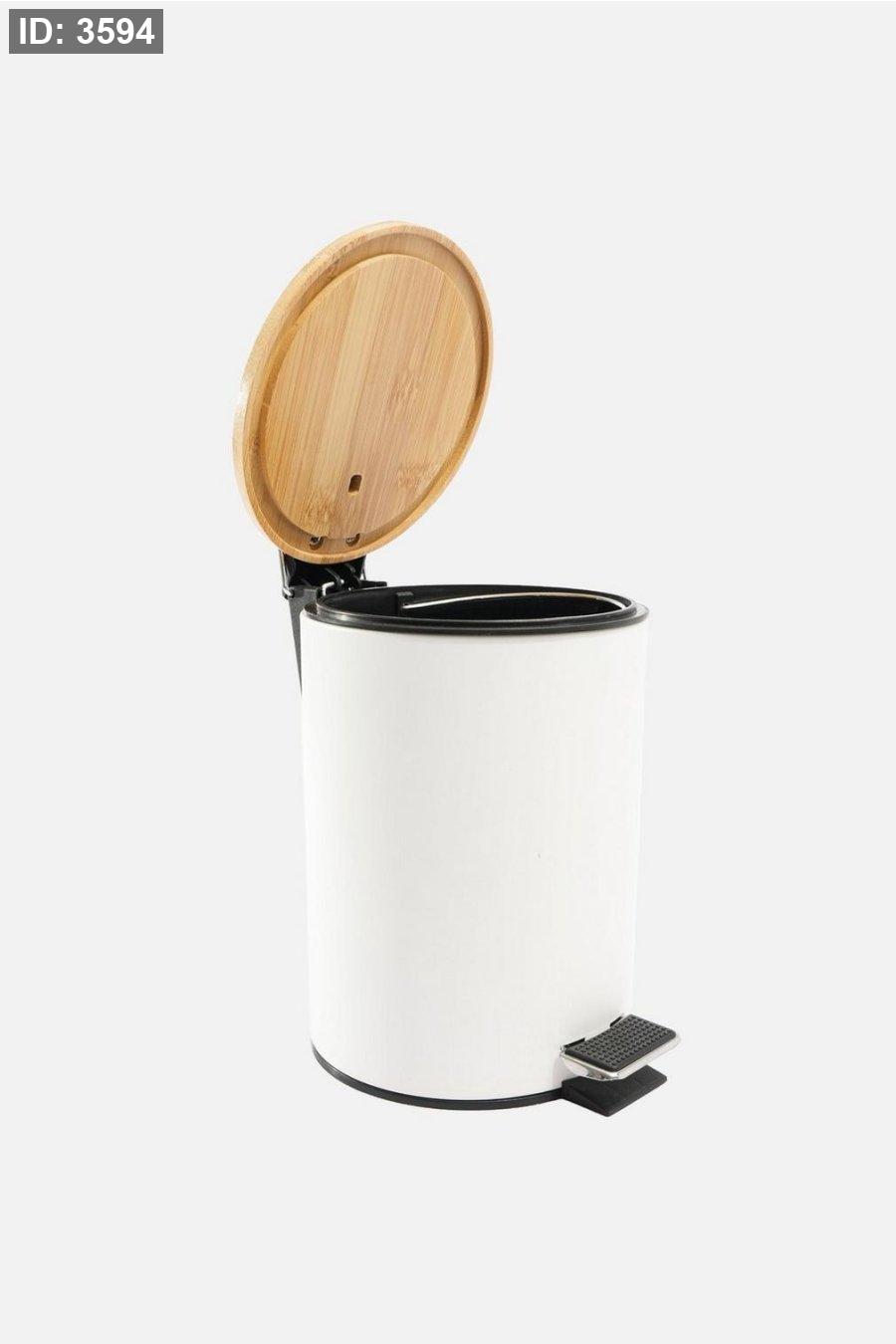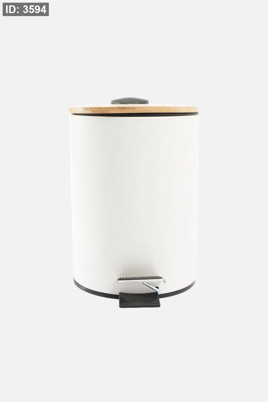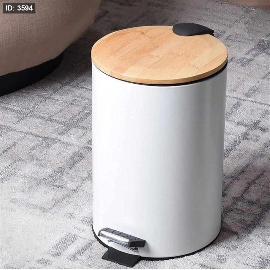 سلة قمامة معدن ابيض غطاء خشب