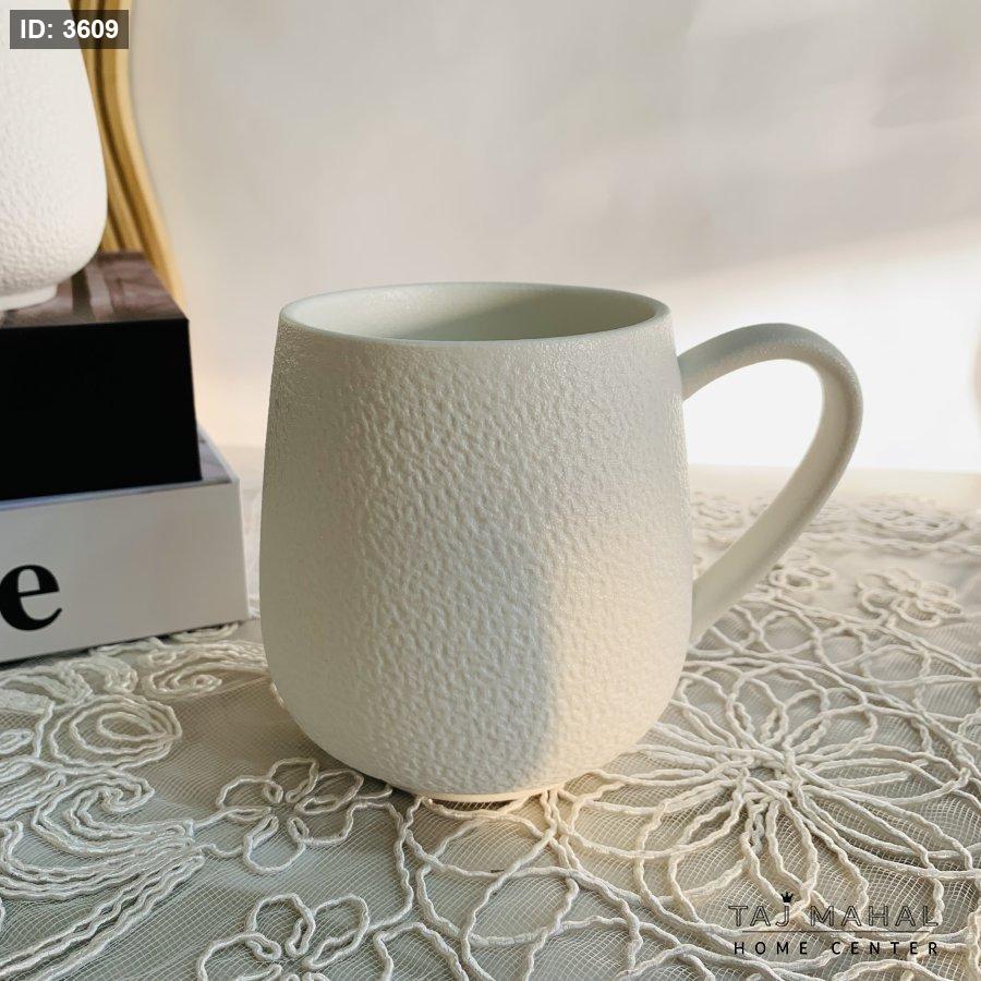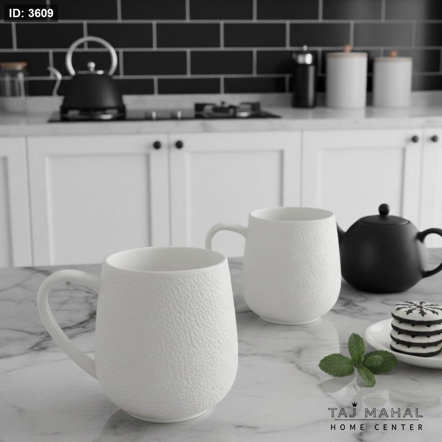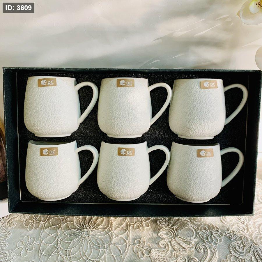 طقم ٦ أكواب شاي بورسلان حجم كبير بلون أبيض