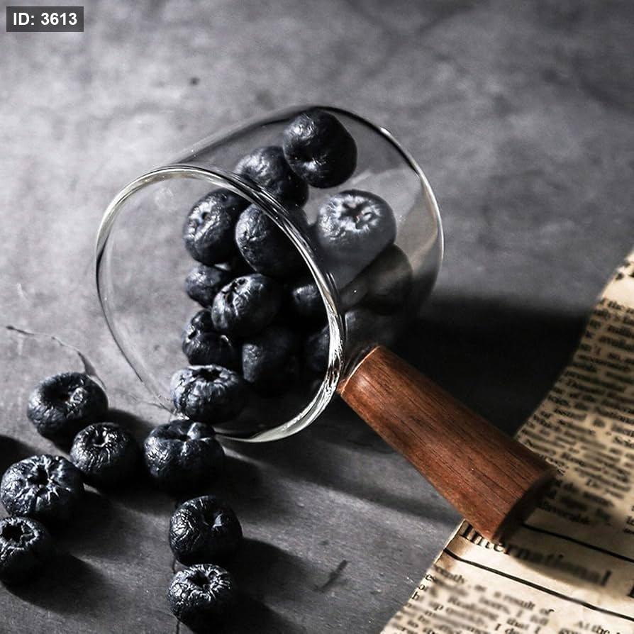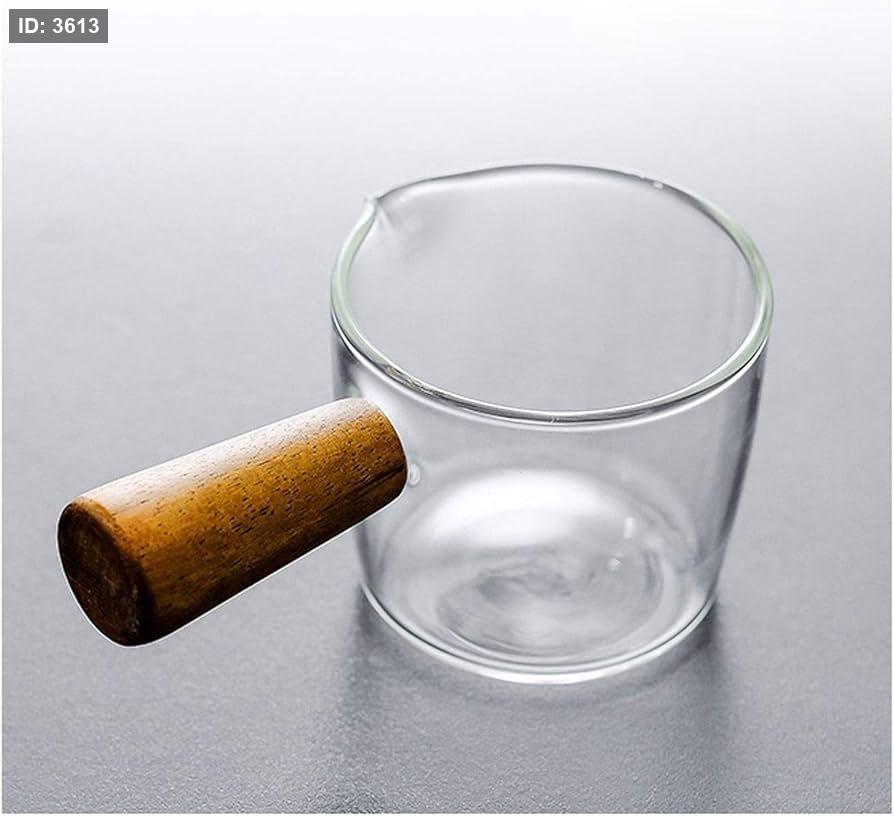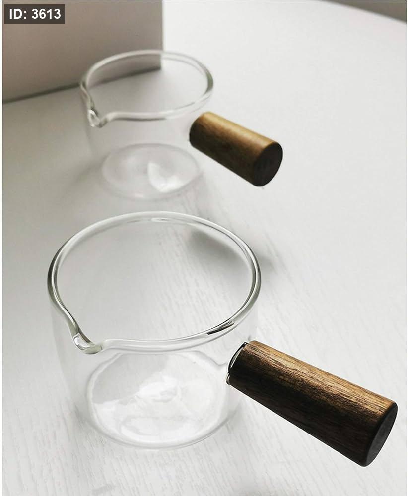كوب قياس زجاجي صغير مقاوم للحرارة مع مقبض خشبي