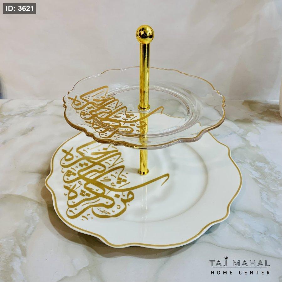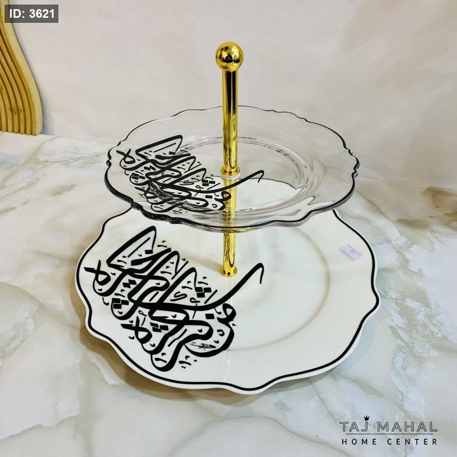 مضيفة طبقتين بورسلان وزجاج بنقوش بالخط العربي
