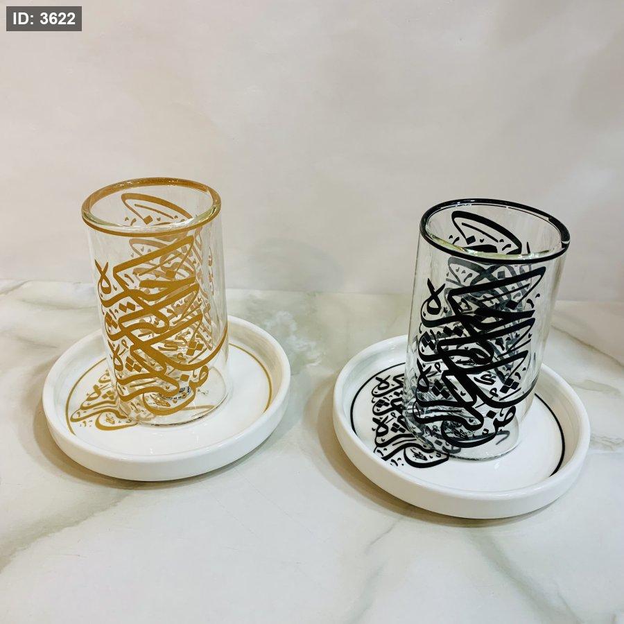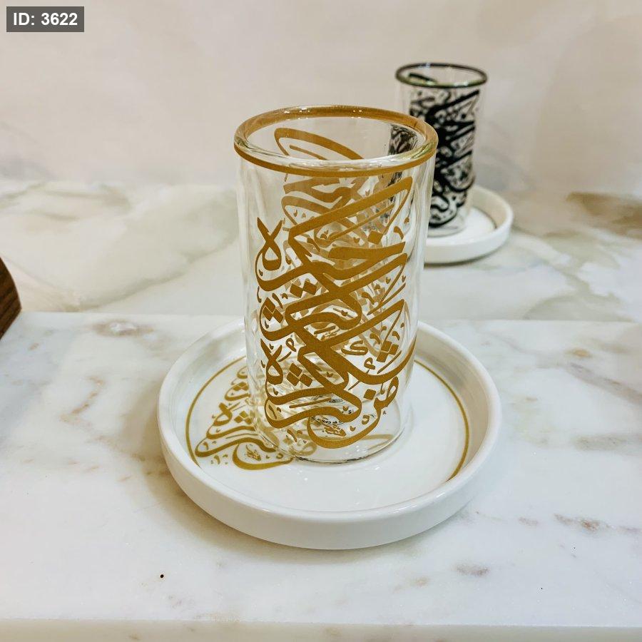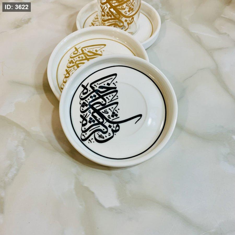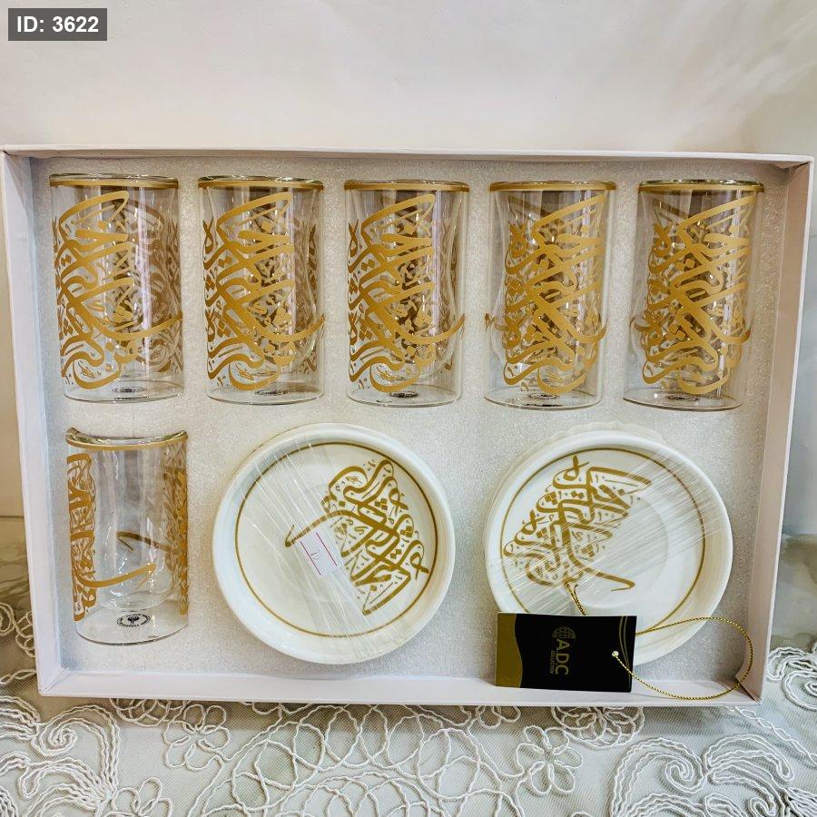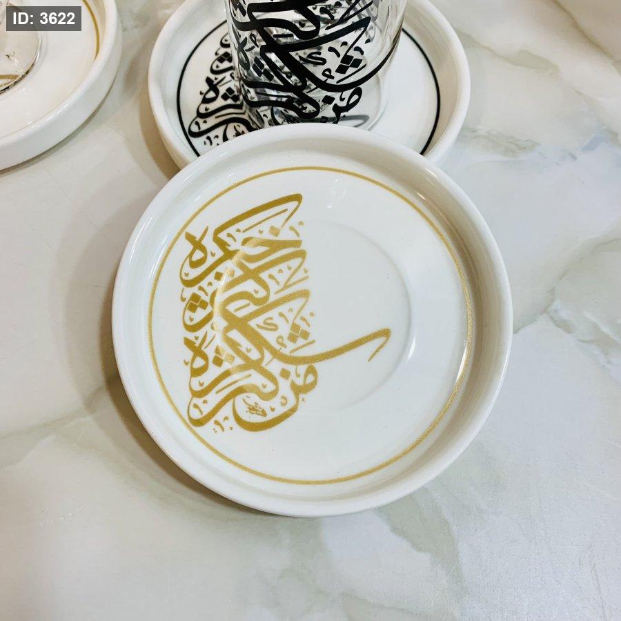 طقم ٦ أكواب زجاجية مع صحون بورسلان