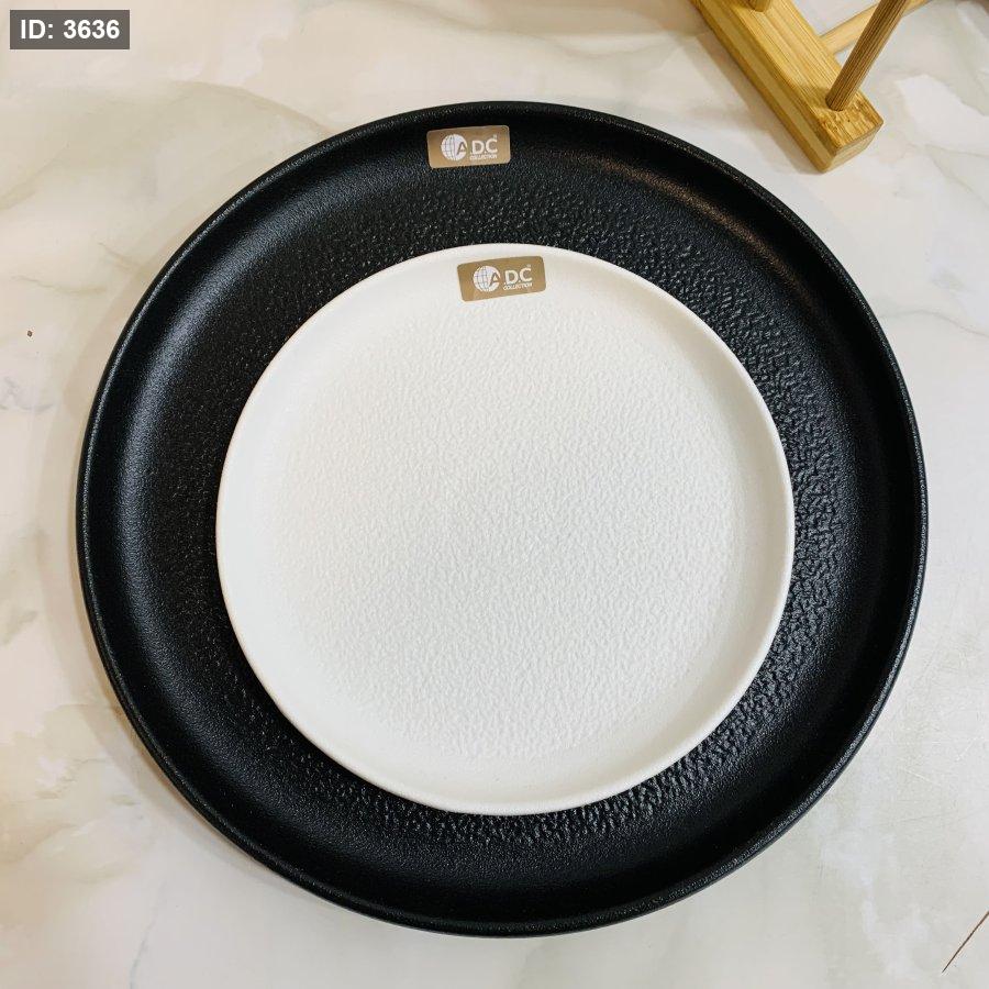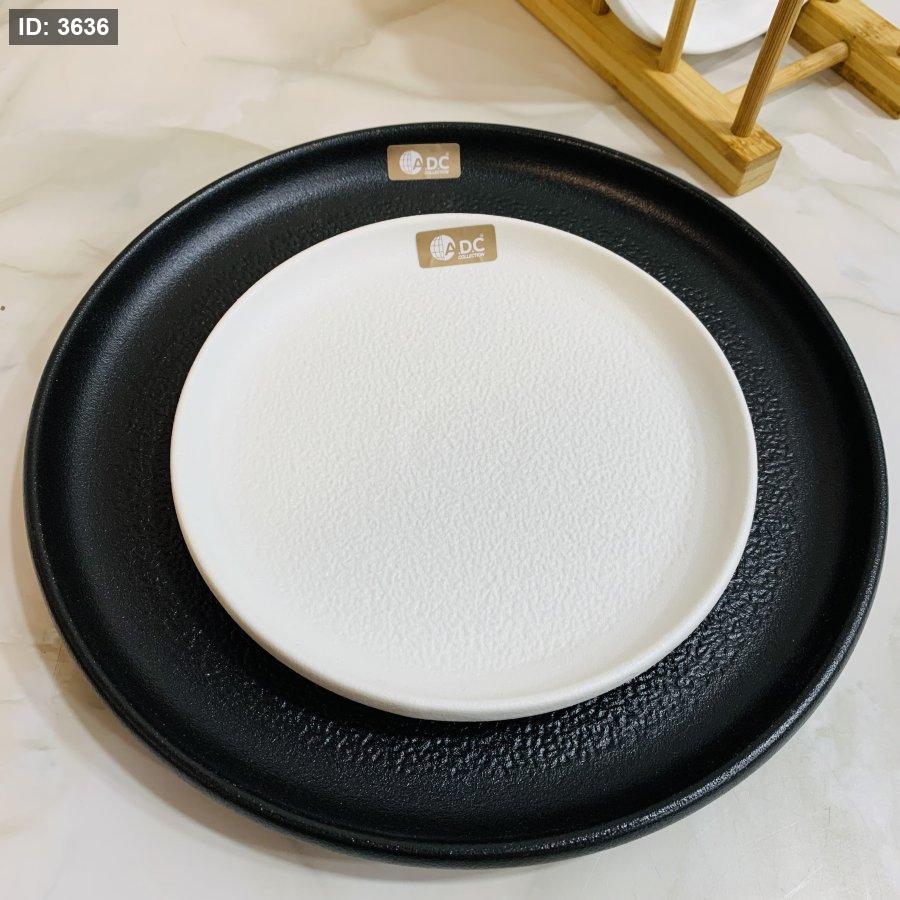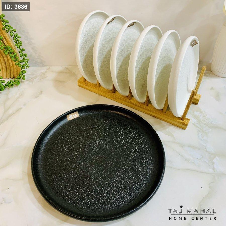 طقم ٦ صحون بورسلان ابيض وصحن اسود كبير