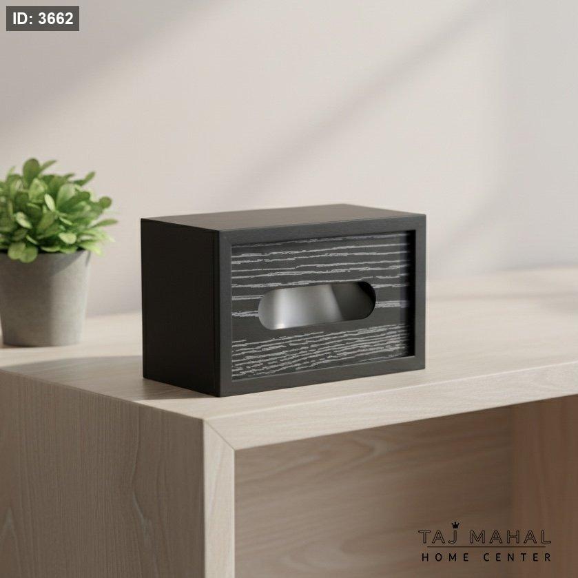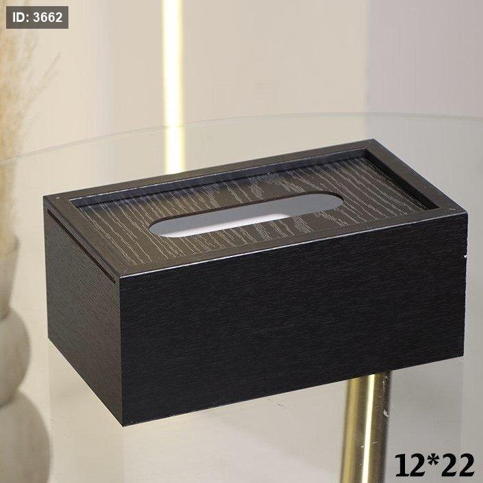علبة/بكيت محارم خشبية باللون الأسود