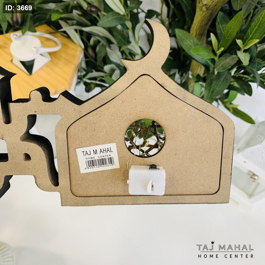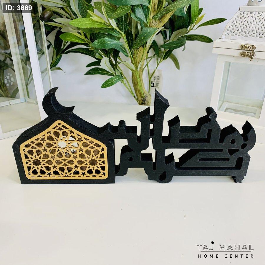 مجسم خشبي أسود بعبارة رمضان مبارك مع اضاءة