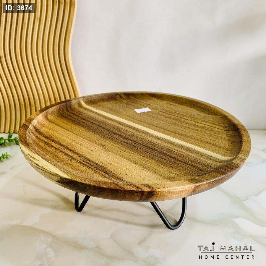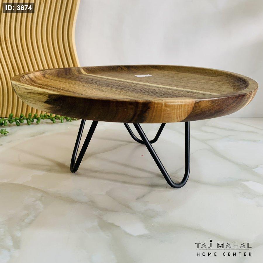 ستاند ضيافة دائري من خشب الأكاسيا مع أرجل معدنية سوداء