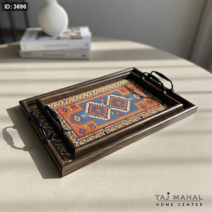 طقم صواني خشبية مزخرفة بنمط سجاد تراثي