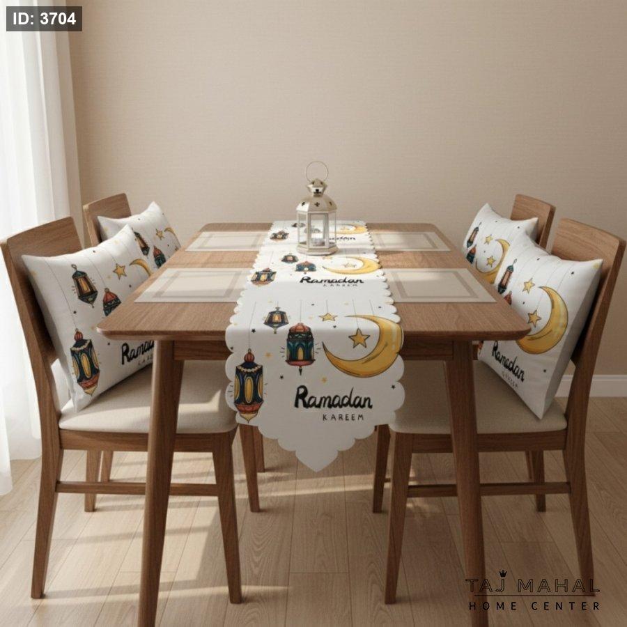 رنر طاولة و ٢ غلاف وسادة بتصميم رمضان كريم أبيض