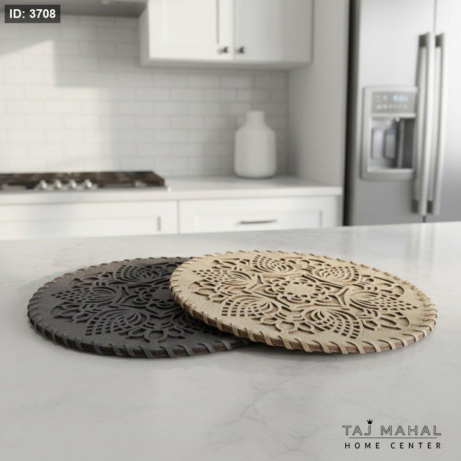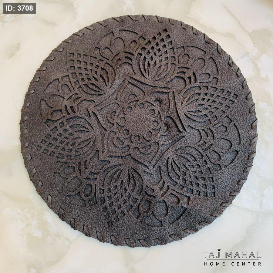 مفرش طاولة دائري جلد صناعي بنمط ماندالا