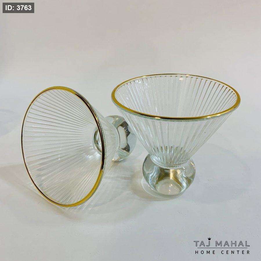 طقم ٦ كاسات بوظة وحلويات زجاجية بخطوط طولية مع حافة ذهبية وقاعدة كروية