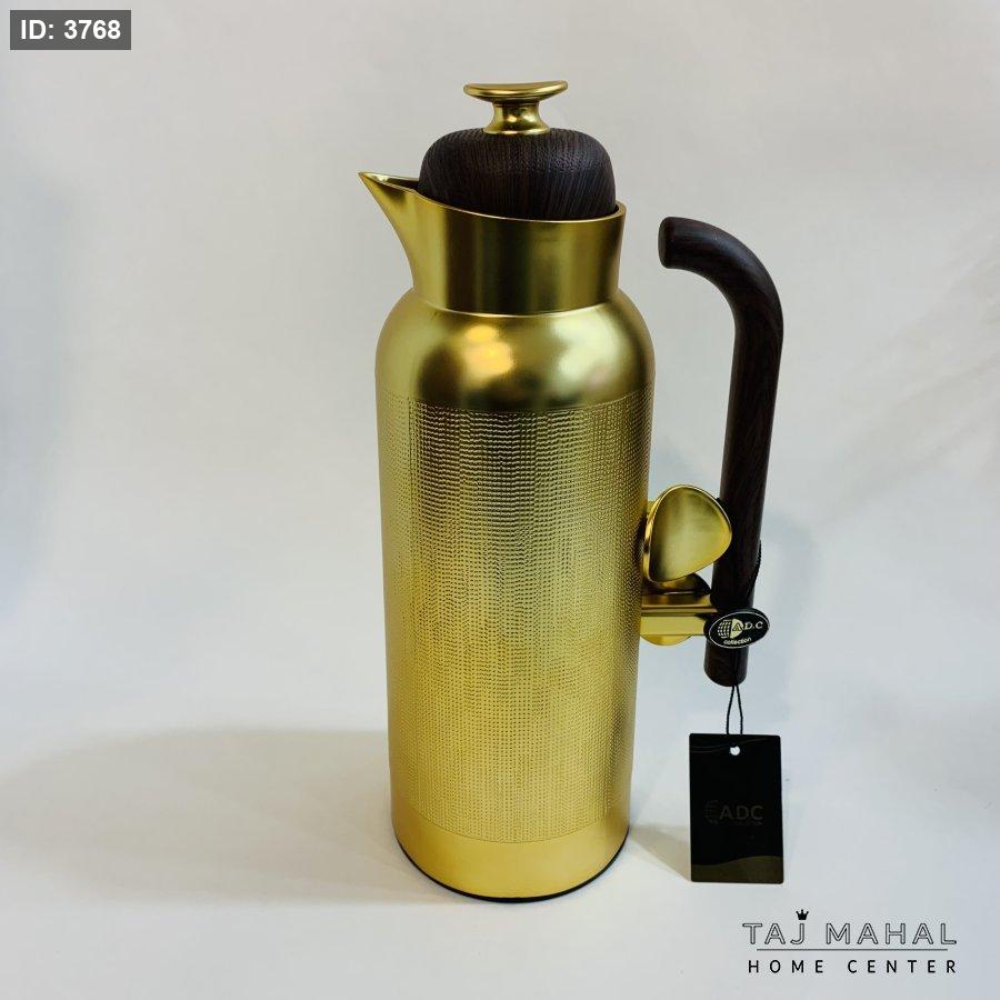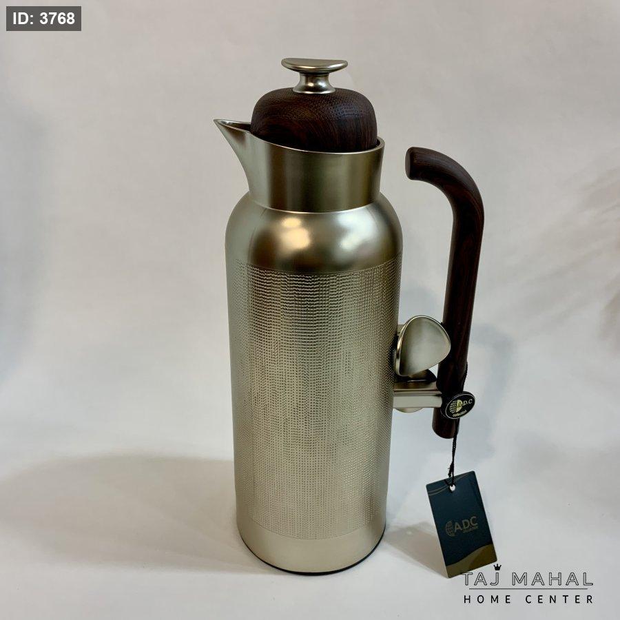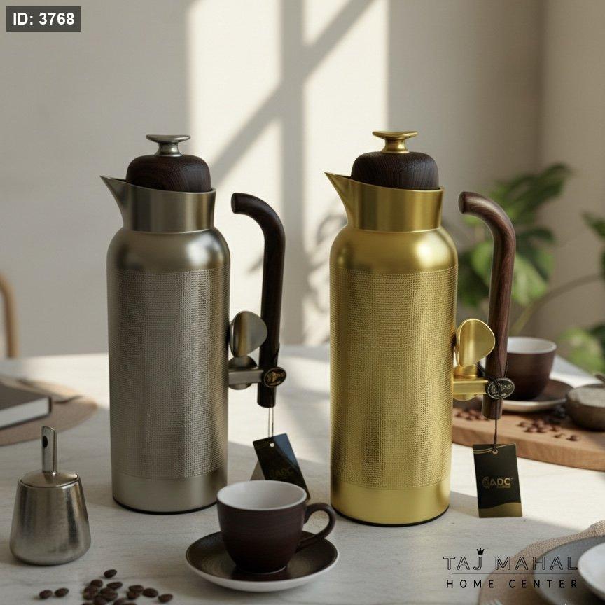 تيرموس قهوة بتصميم أنيق أسطواني ويد خشبية