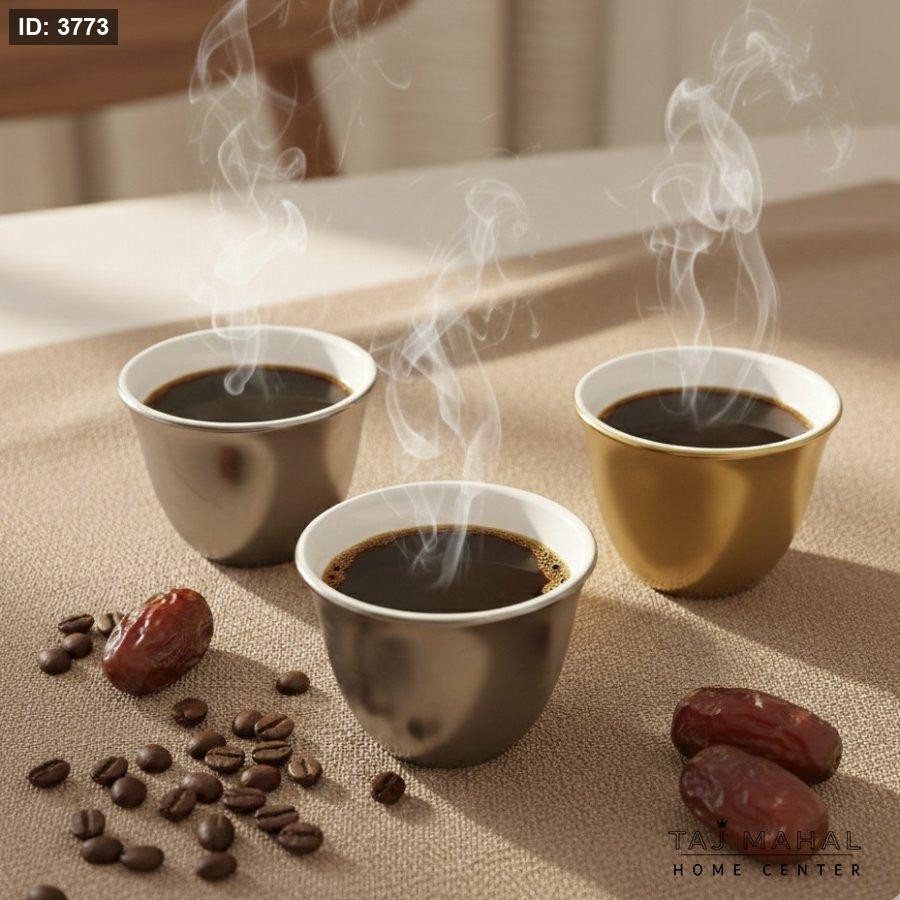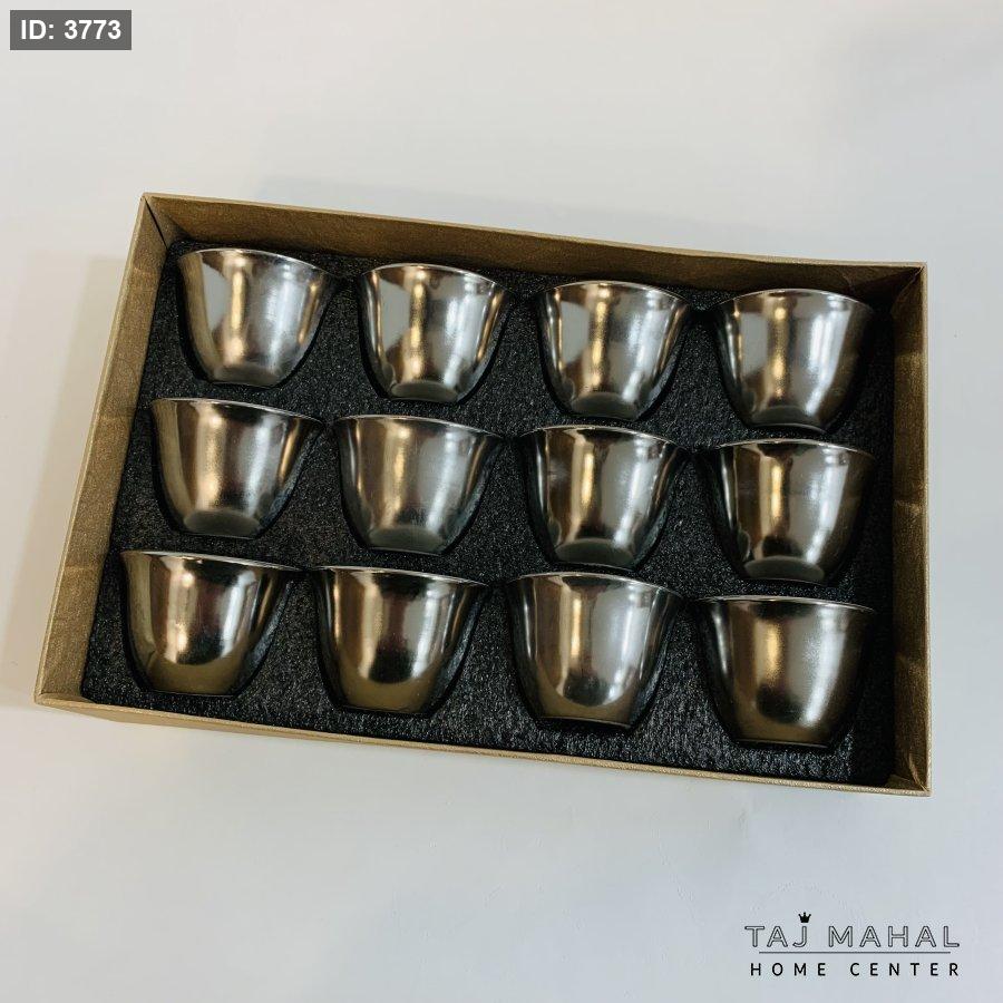 طقم فناجين قهوة بورسلان باللون فضي او ذهبي ١٢ قطعة