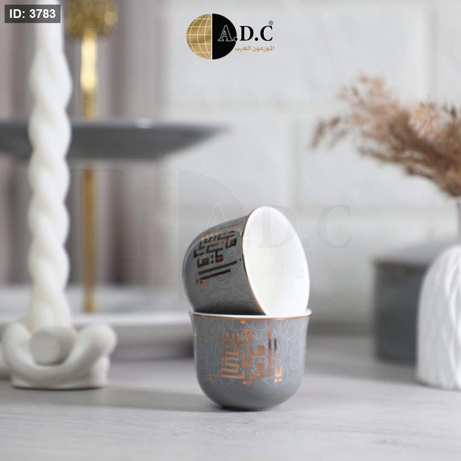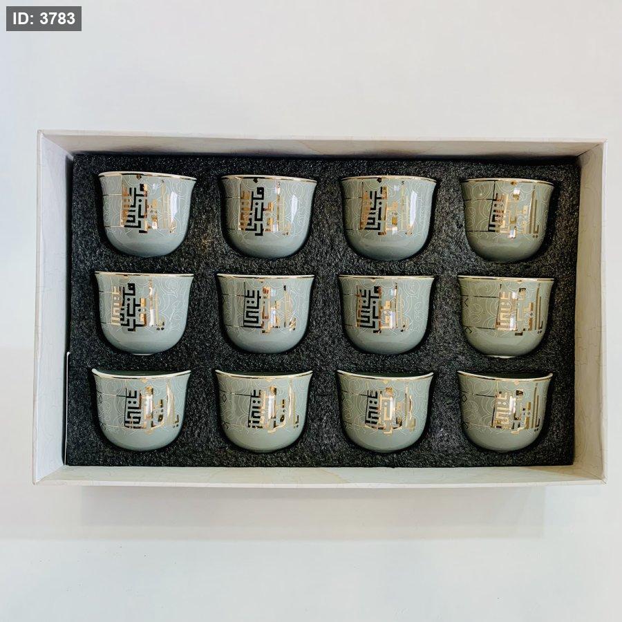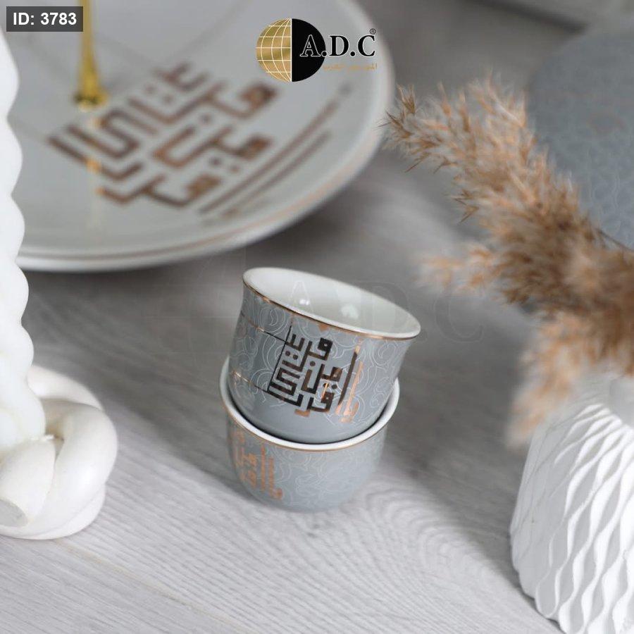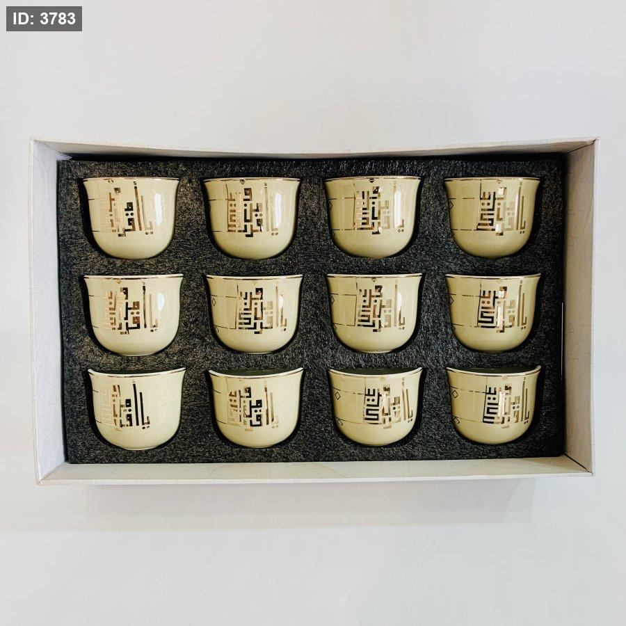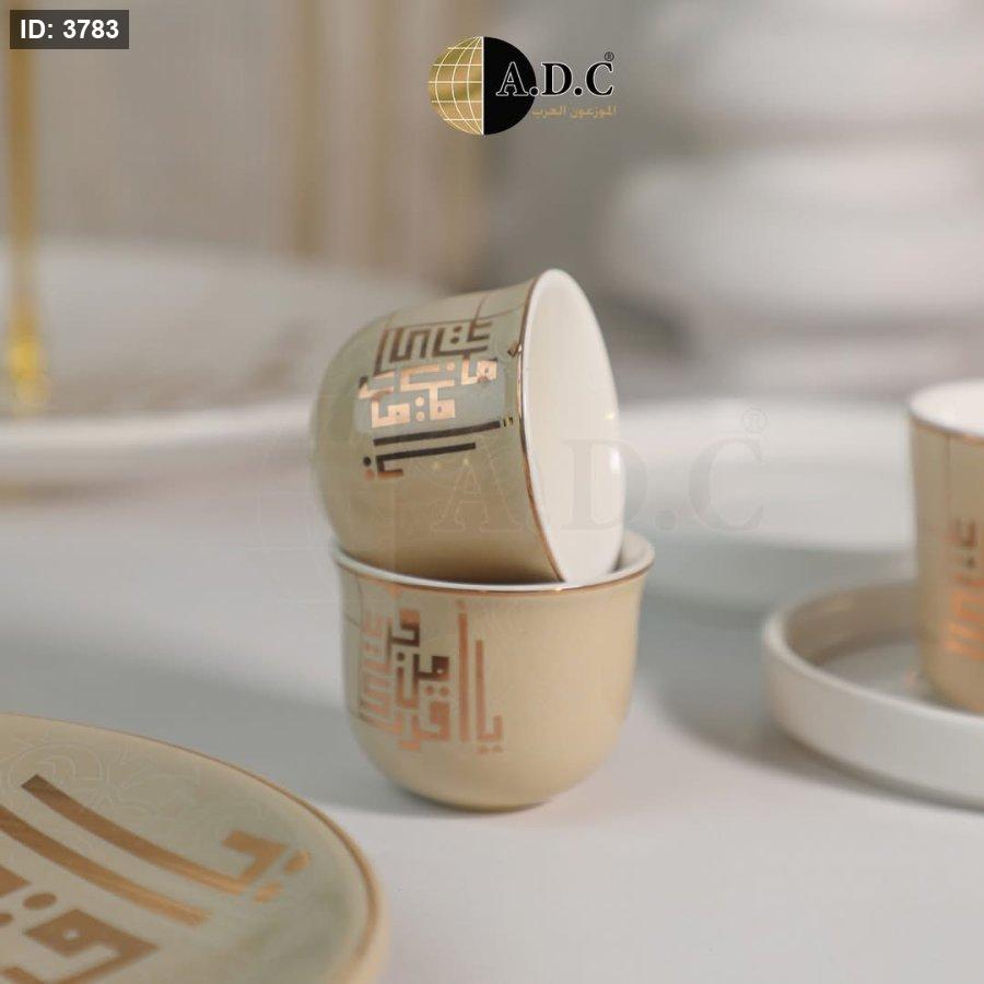 طقم فناجين قهوة بورسلان بخط عربي مذهب
