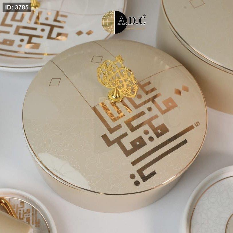 صحن تقديم خزفي مع غطاء بلمسة خط عربي أنيقة